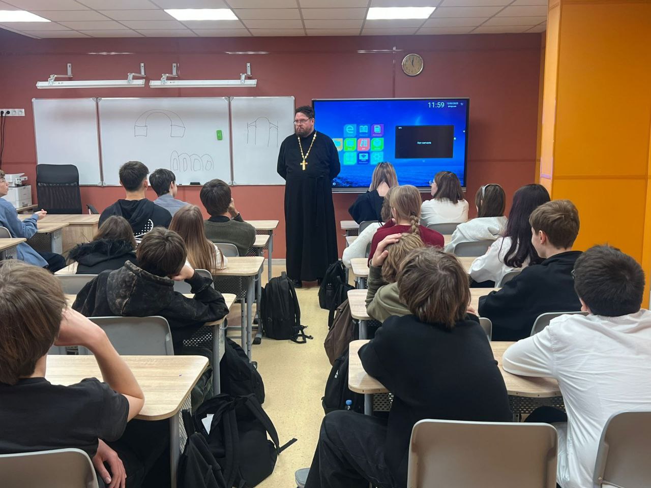 1 декабря в Краснознаменской школе городского округа Щёлково состоялась беседа священника с учащимися, посвященная семейным ценностям.