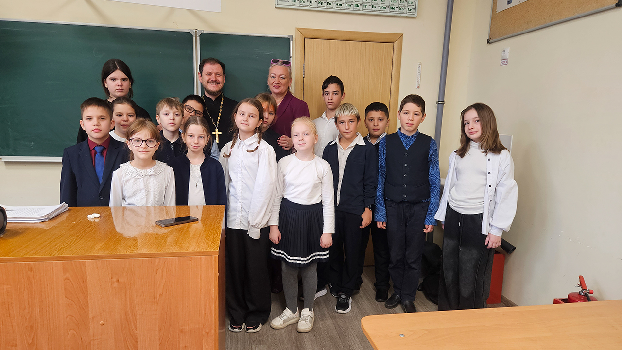 Встреча учащихся со священником в школе № 20 посёлка Загорянский