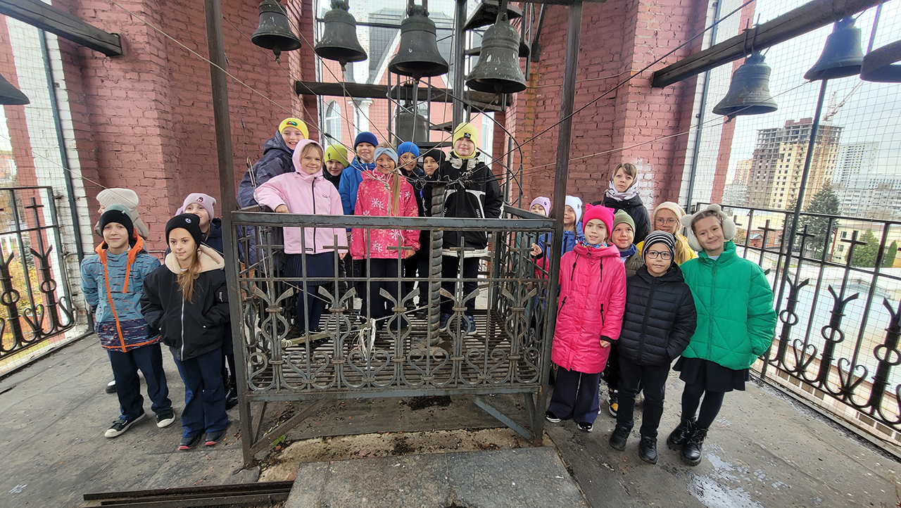 Школьники на экскурсии в Троицком соборе города Щёлково