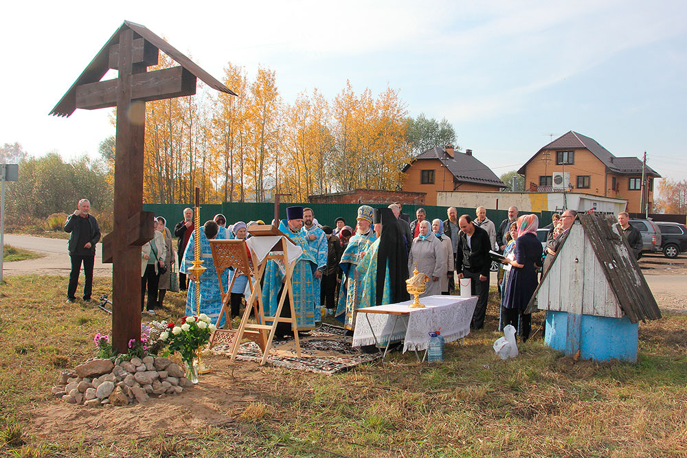 14 октября, в Праздник Покрова Пресвятой Богородицы, благочинный Щелковского церковного округа протоиерей Андрей Ковальчук в сослужении настоятеля Князь-Владимирского храма д. Новофрязино священника Виктора Долгих и клирика того же храма иеромонаха Никона Сайфулина, совершил молебен Пресвятой Богородице на месте будущего строительства храма в д. Мишнево.
