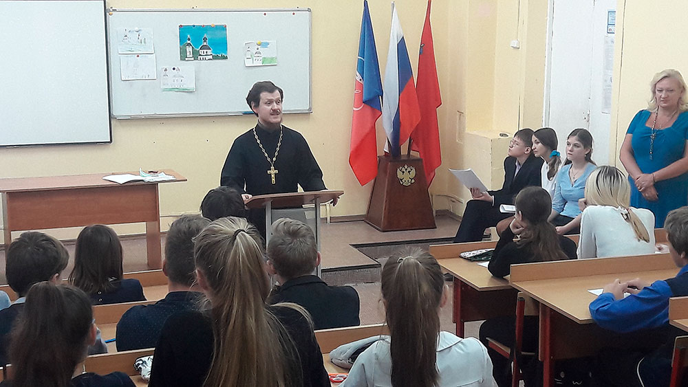 19 октября настоятель Державного храма г. Фрязино священник Димитрий Поповский провел урок Основ православной культуры в рамках ОРКСЭ с учащимися 4 класса школы № 1 на тему «Нагорная проповедь Христа».