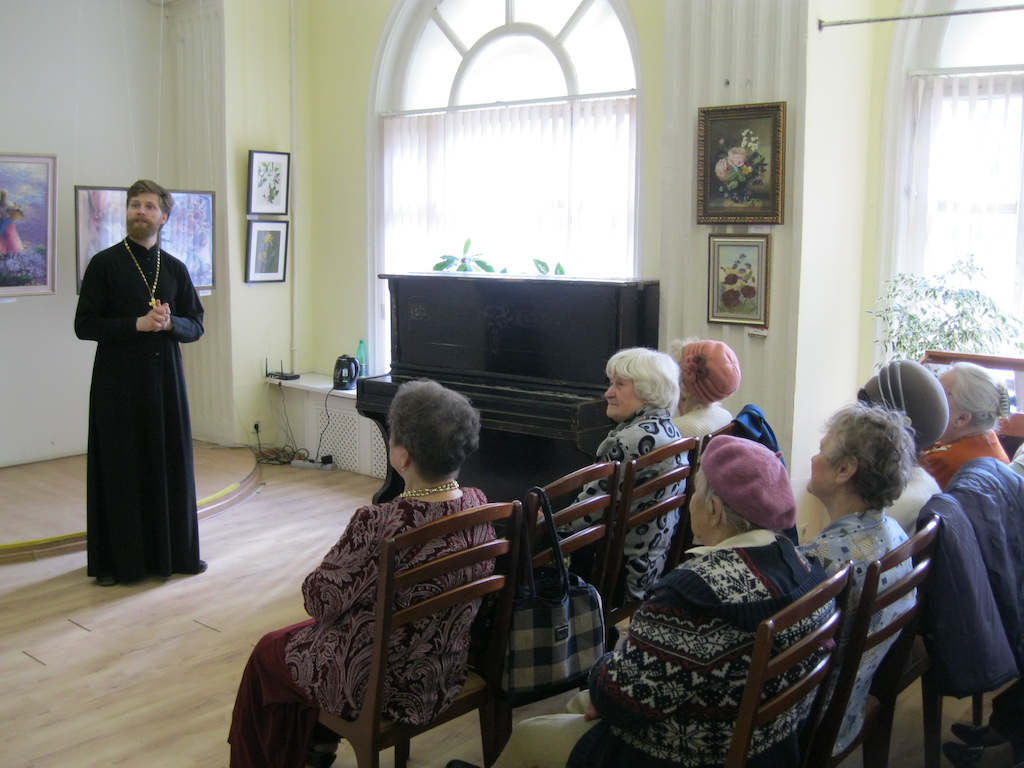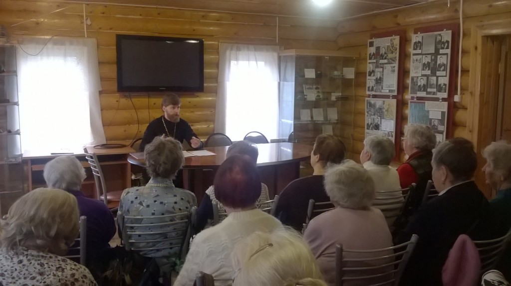 26 апреля в доме-музее И.И.Иванова настоятель Державного храма г. Фрязино священник Димитрий Поповский встретился с членами клуба «Дети войны», поговорил с ними о Евангелии, а также ответил на их вопросы.