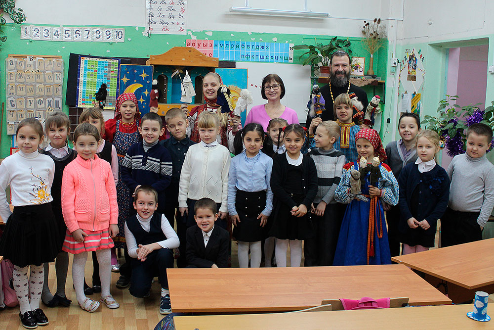 27 декабря учащиеся воскресной группы Сергиевского храма с. Трубино показали в 1-м классе Трубинской CОШ рождественский кукольный спектакль.