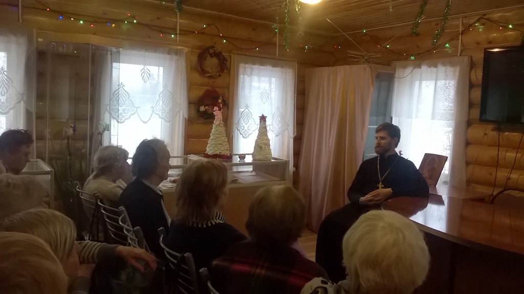 21 декабря настоятель Державного храма г. Фрязино священник Димитрий Поповский встретился со старшим поколением фрязинцев в Фольклорно-этнографической студии «Светёлка» ЦКиД «Факел», поговорил с ними о празднике Рождества Христова, а также ответил на волновавшие их вопросы.