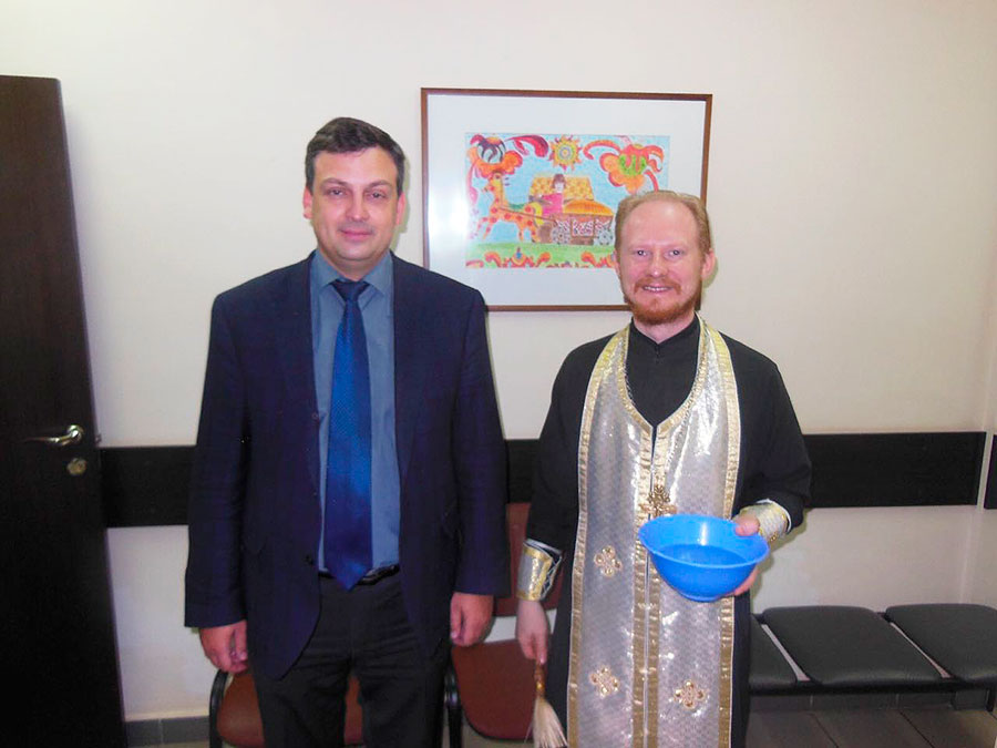 Поляковский Гавриил Борисович, председатель Комитета по образованию, поблагодарил отца Сергия за проведенный чин освящения и провел беседу по дальнейшему взаимодействию.
