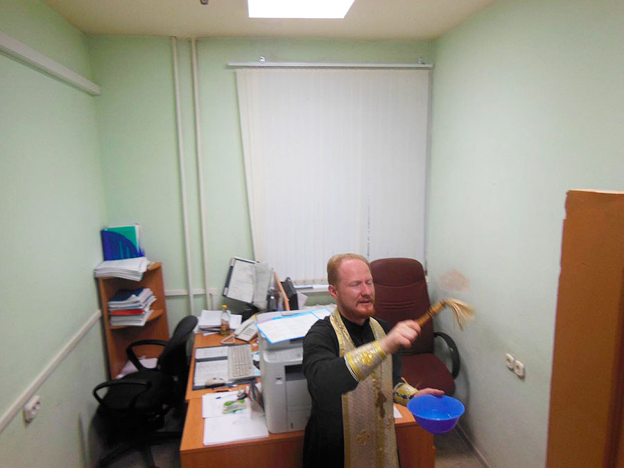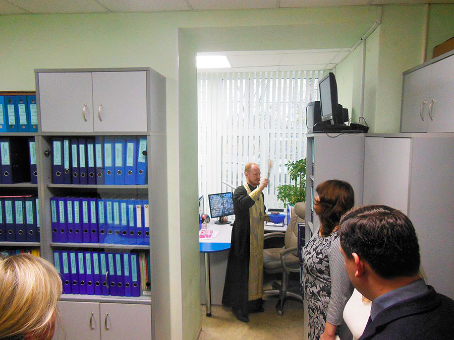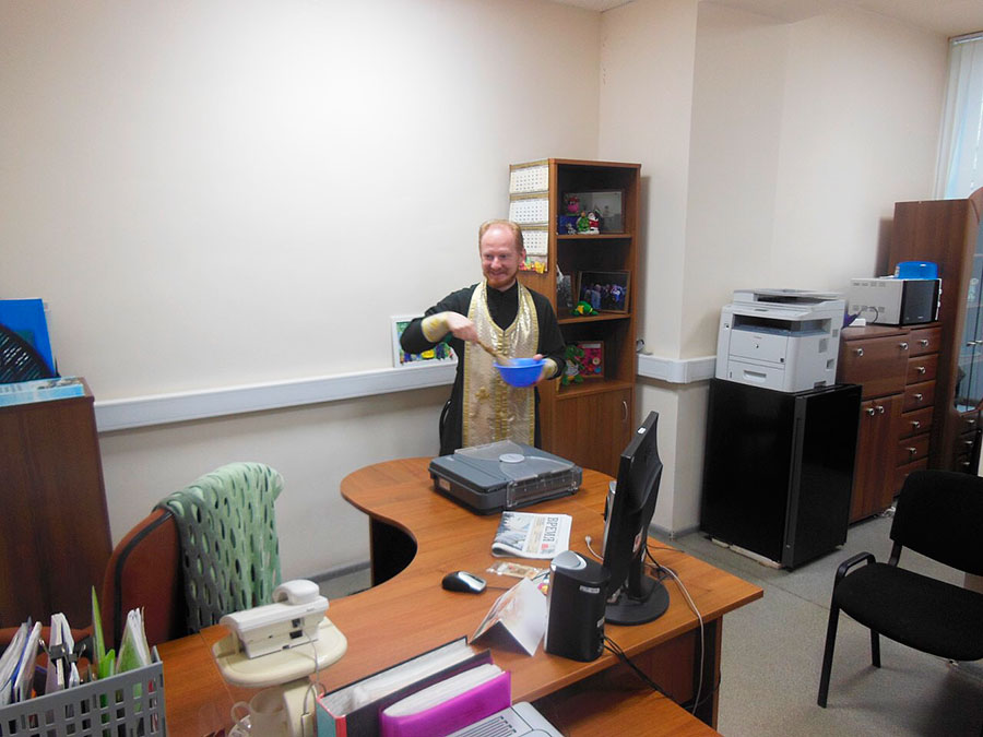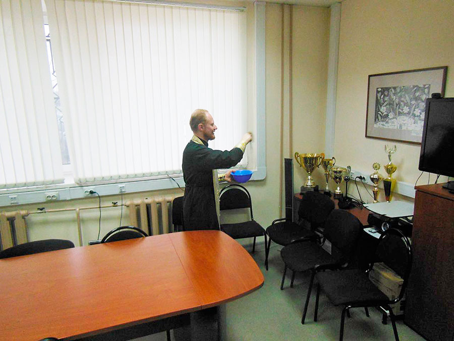 23 ноября настоятель храма блж. Ксении Петербургской дер. Медвежьи Озёра священник Сергий Ковальчук освятил помещение Комитета по вопросам образования Щелковского муниципального района.