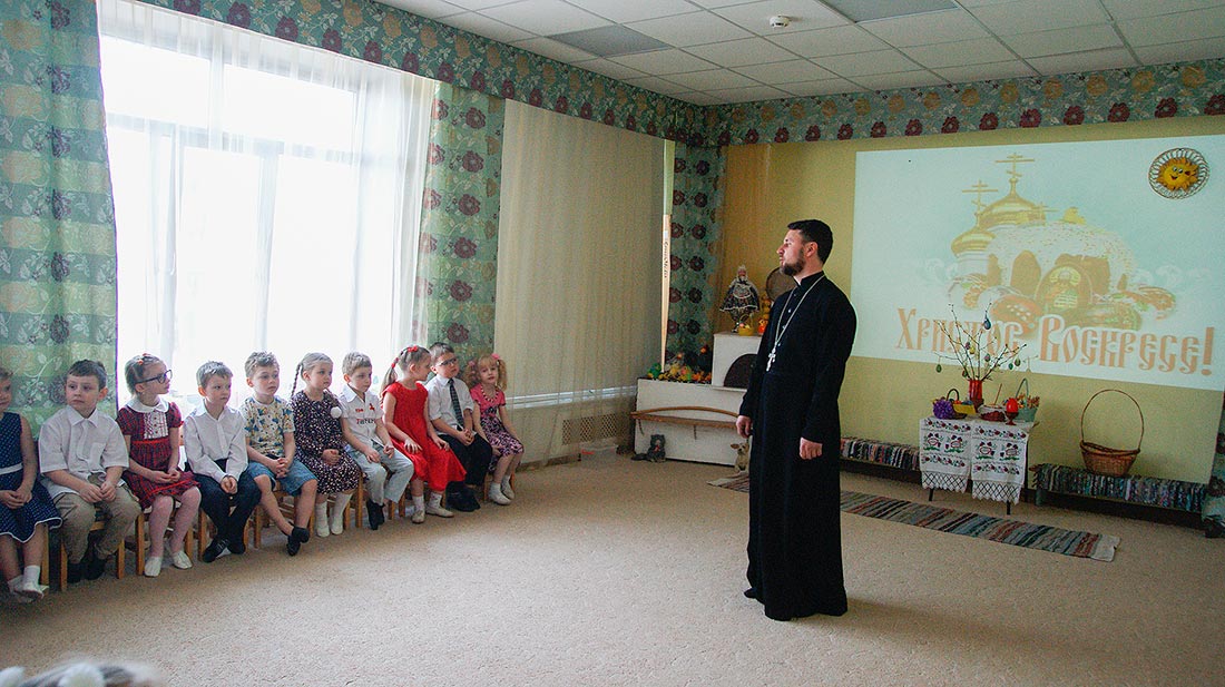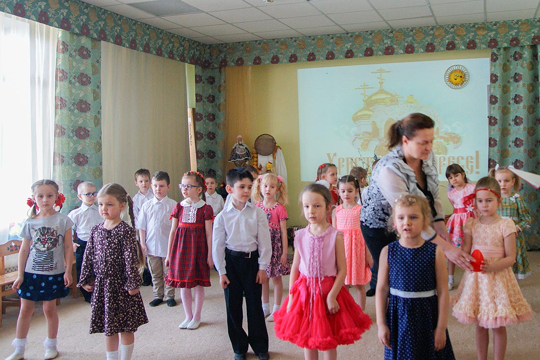 В этот день в детском саду проходил ежегодный детский утренник, посвященный празднику Светлого Христова Воскресения. Под руководством старшего воспитателя Ирины Анатольевны Семухиной, музыкального руководителя Надежды Игоревны Безлатной, а также воспитателя Татьяны Юрьевны Беловой воспитанники старшей группы «Теремок» подготовили к этому дню праздничную программу, состоящую из песен и стихов, посвященных Пасхе Господней.