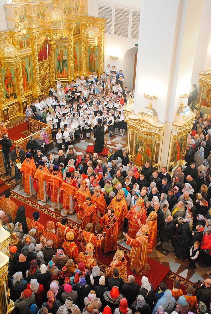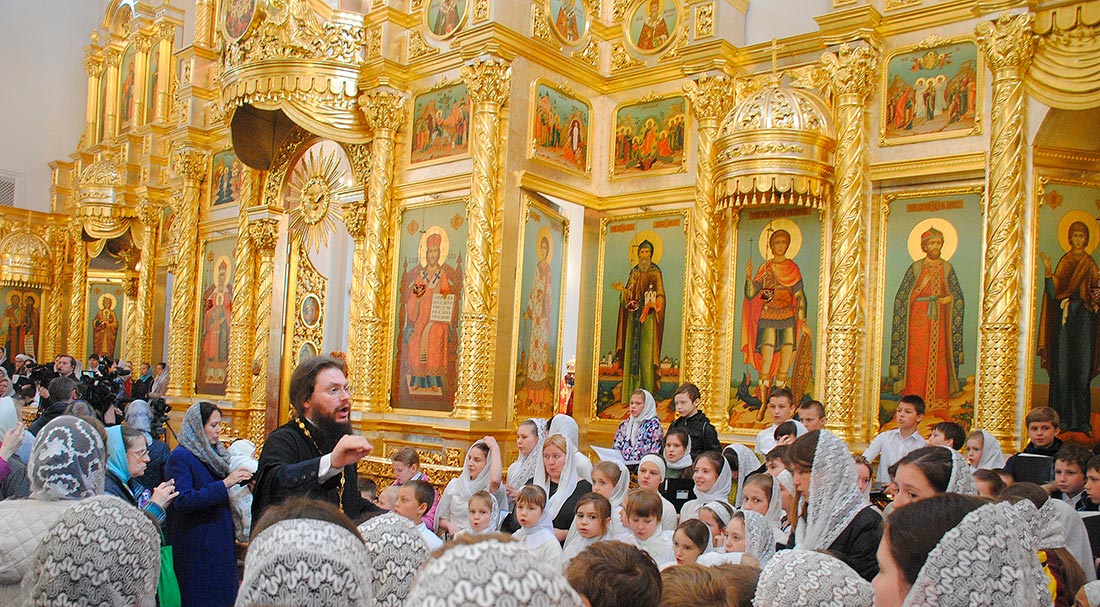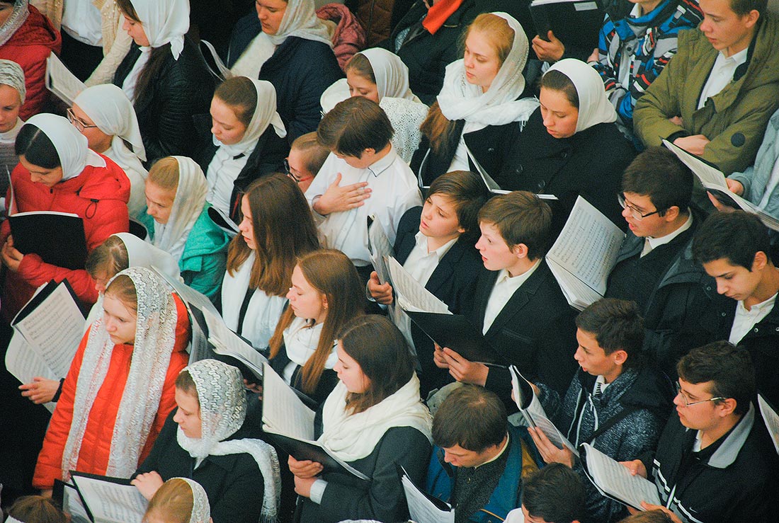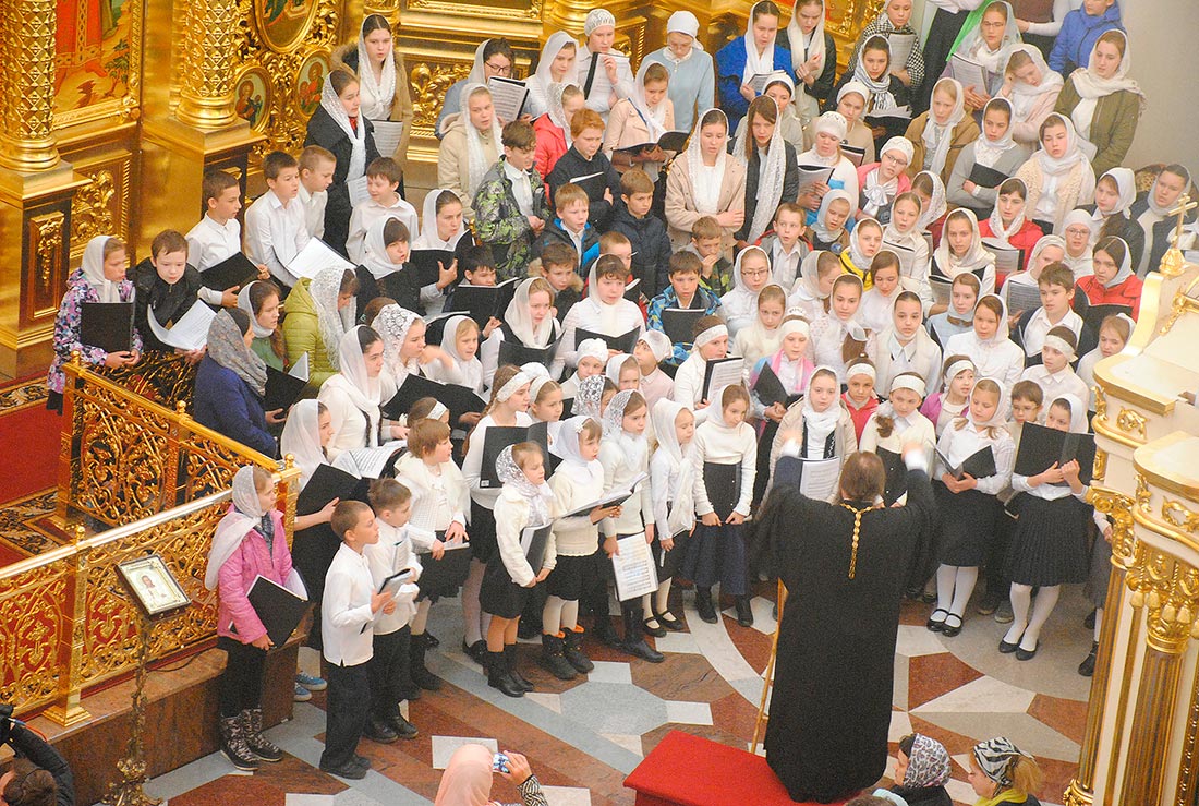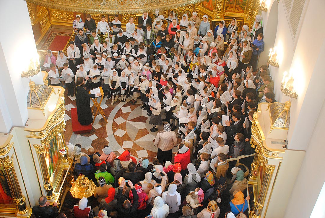 Подобной службе предшествует большая подготовительная работа. Помимо усиленной подготовки на своих приходах, дети несколько раз выезжали на сводные репетиции в другие благочиния. В этот раз на службе коллектив был условно поделен на два хора, что дало возможность петь антифонно, соединяясь воедино на главных песнопениях. Это потребовало особого внимания исполнителей и четкой координации между регентами.