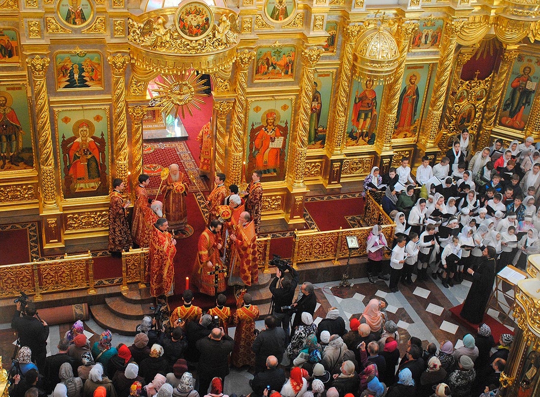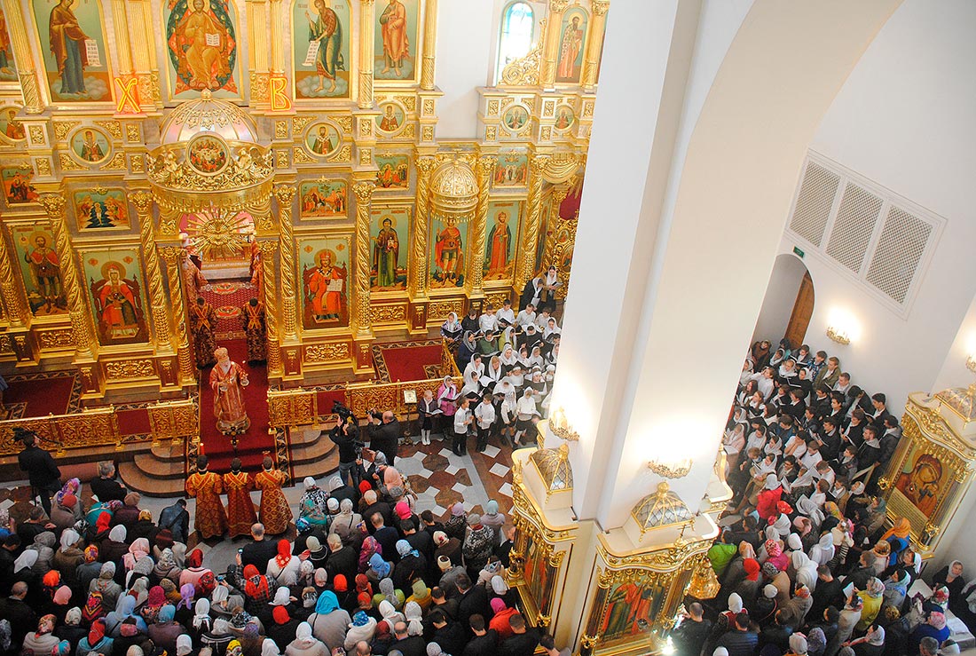 14 мая в Георгиевском соборе города Одинцово состоялась архиерейская служба с участием Сводного детского хора Московской епархии, приуроченная к 10-летию освящения храма.