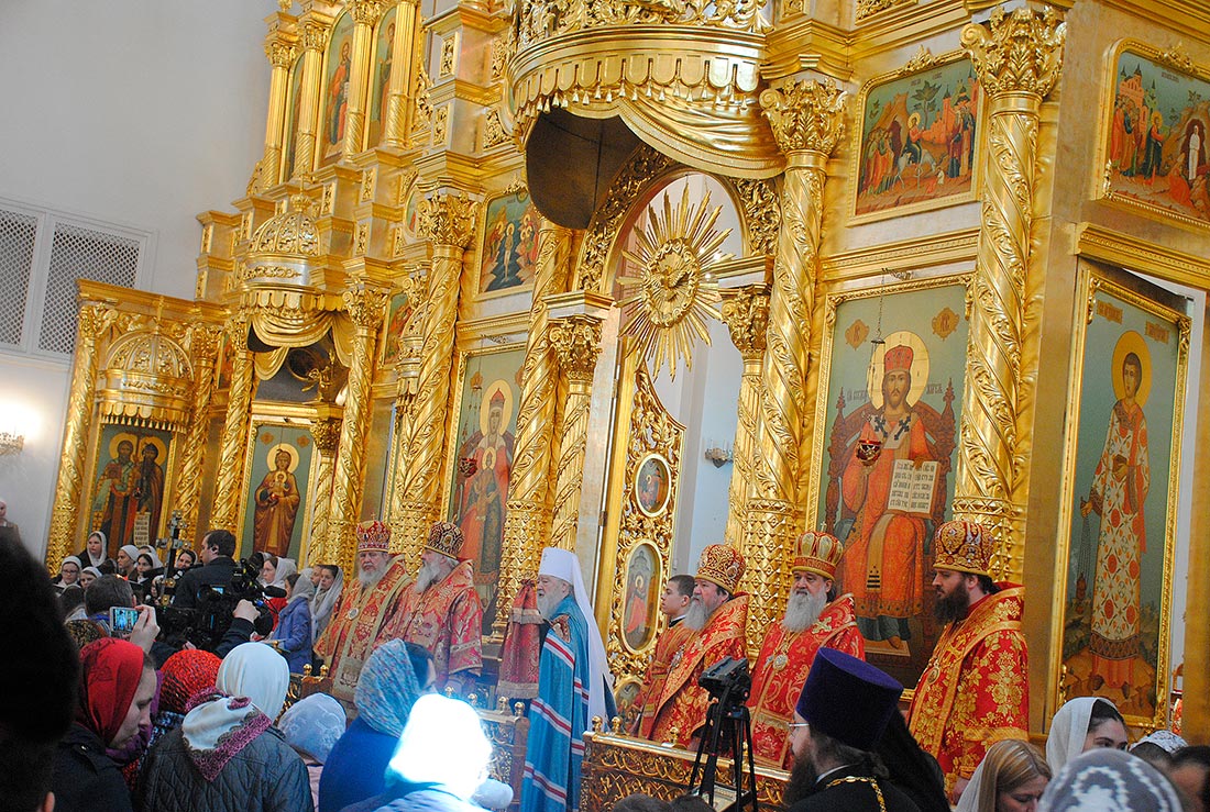 Божественную литургию в этот день возглавил правящий архиерей - митрополит Крутицкий и Коломенский Ювеналий. Владыке митрополиту сослужили епископ Илиан (Востряков), епископ Видновский Тихон, епископ Серпуховской Роман, епископ Балашихинский Николай, епископ Зарайский Константин, епископ Луховицкий Петр, благочинный церквей Одинцовского округа архимандрит Нестор (Жиляев), благочинный церквей Щелковского округа протоиерей Андрей Ковальчук, благочинные других округов и священнослужители Московской епархии.