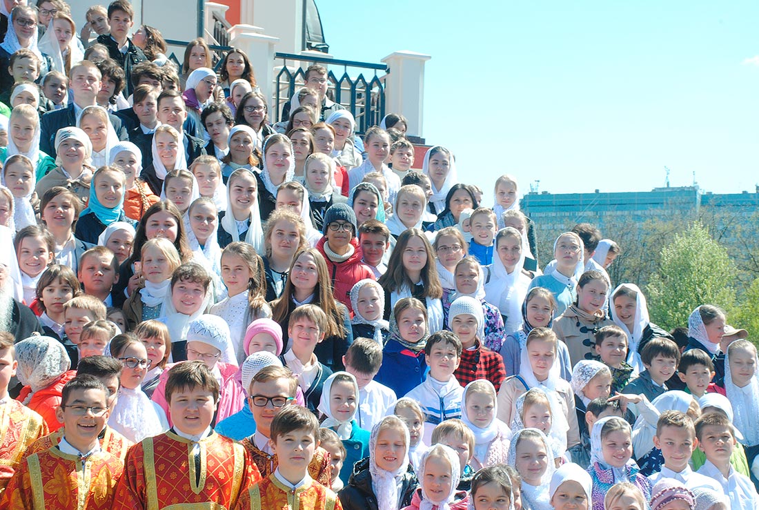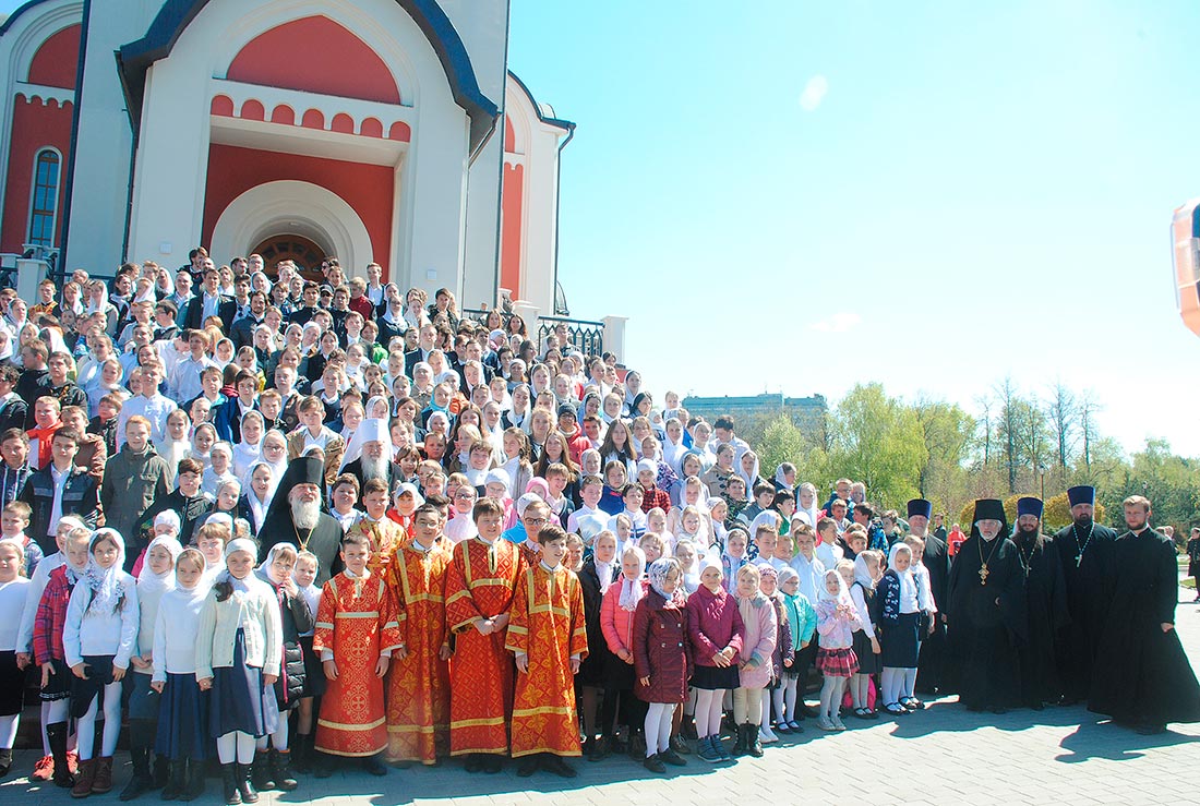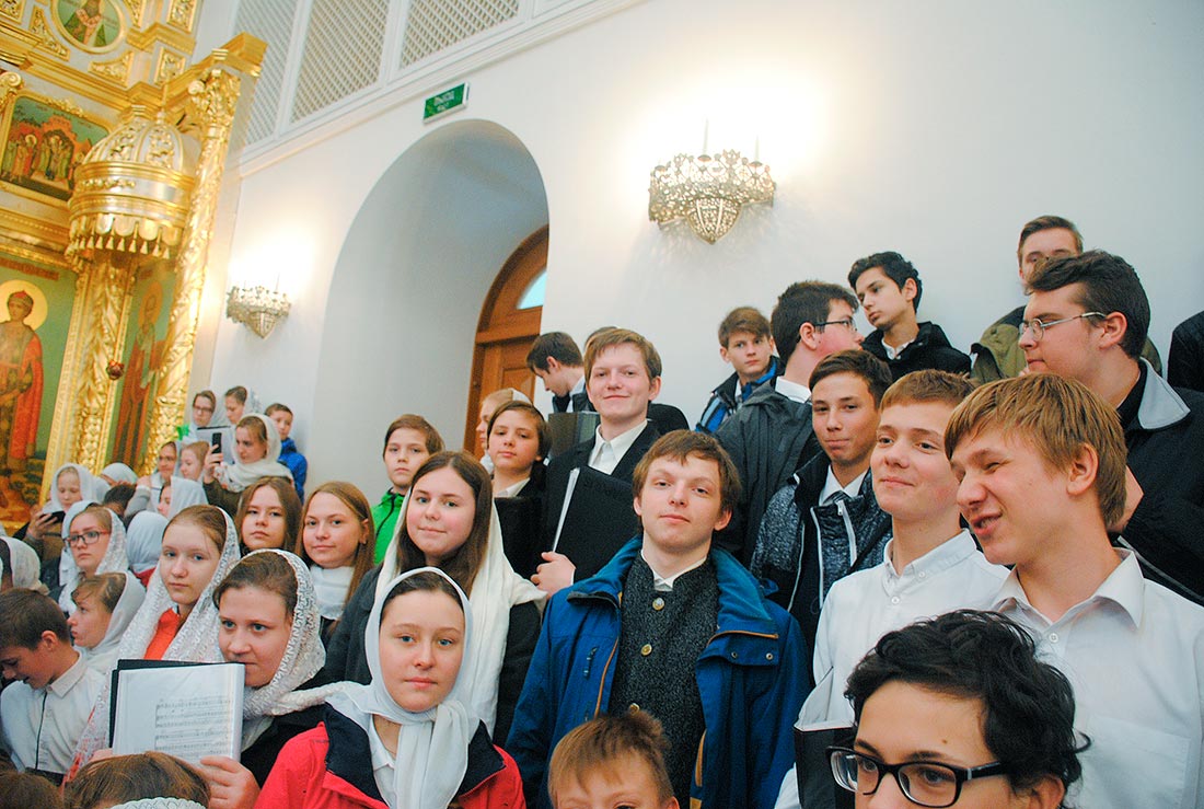 За Божественной литургией пели около 400 детей из Щелковского, Одинцовского, Домодедовского, Подольского, Красногорского и Богородского благочиний. Из Щелковского благочиния пел сводный хор под управлением регента Троицкого собора г. Щелково Анны Александровны Медведевой. Для хора, который был создан в 2016 году под руководством свящ. Сергия Голева, это уже вторая проведенная литургия.