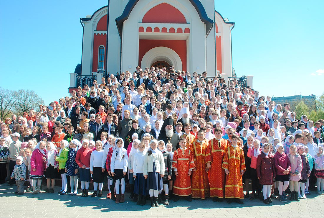 В своем слове владыка Ювеналий тепло поприветствовал всех участников и руководителей коллектива. После архипастырского благословения все собрались на общее фото у величественной лестницы Георгиевского собора. Каждый из детей получил памятный подарок. Старанием принимающей стороны была организована полевая кухня, а на живописной лужайке перед храмом дети могли поближе познакомиться и пообщаться друг с другом, поиграть в спортивные игры.