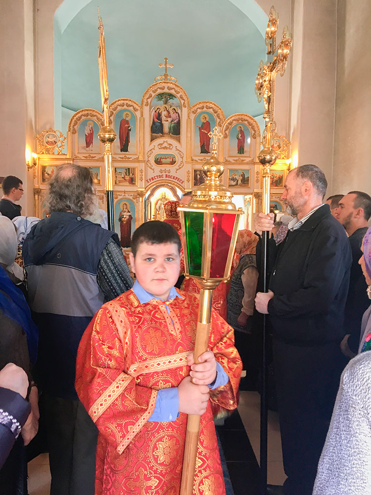 В день престольного праздника вокруг храма был совершен крестный ход по пасхальному чину, в котором вместе с прихожанами участвовала заместитель Администрации сельского поселения Трубинское Елена Николаевна Дорофеева.