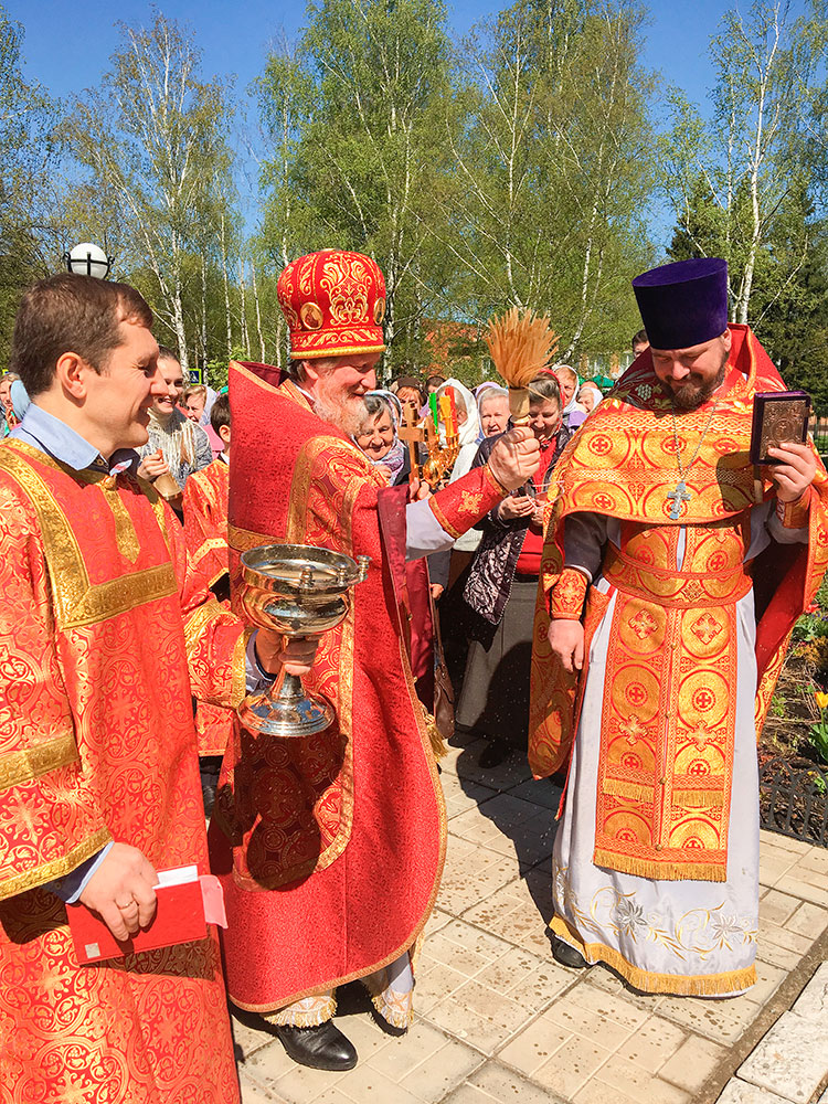 18 мая благочинный церквей Щелковского округа протоиерей Андрей Ковальчук в сослужении настоятеля храма в честь иконы Божией Матери «Неупиваемая Чаша» священника Алексия Кукушкина и диакона Кирилла Ковальчука провел праздничное богослужение в поселке Литвиново. После Божественной литургии отец благочинный обратился к прихожанам с проповедью и поздравил их с престольным праздником.