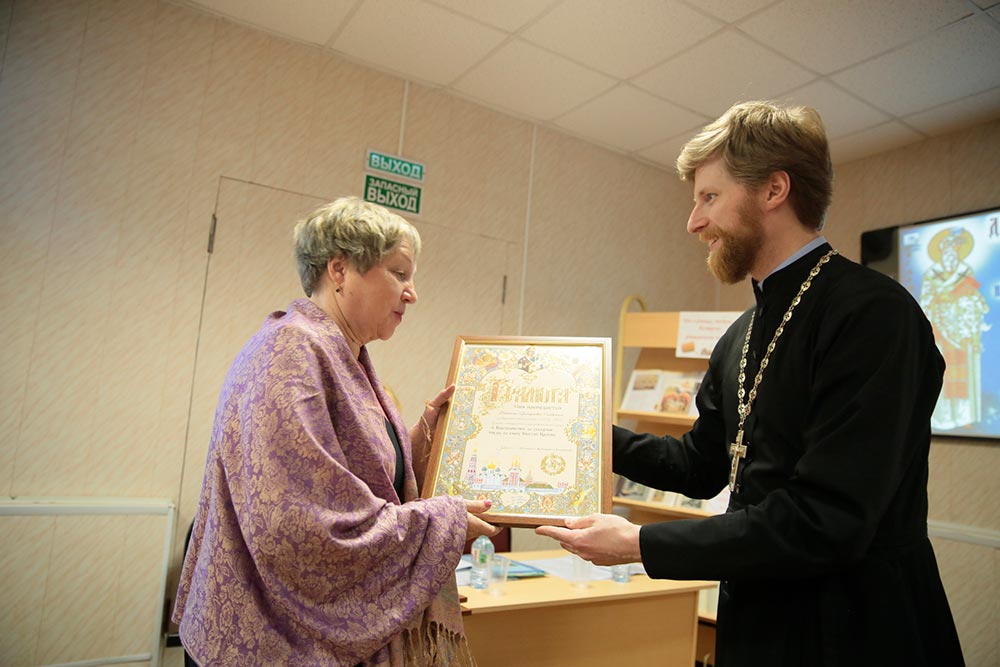 Благословенными грамотами митрополита Крутицкого и Коломенского Ювеналия были отмечены усердные труды на ниве духовно-нравственного воспитания детей и молодежи заведующей библиотекой МБУ ДПО Учебно-методического образовательного центра Натальи Григорьевны Собяниной, методиста МБУ ДПО Учебно-методического образовательного центра Елены Николаевны Черенковой и руководителя Образцового детского коллектива вокальной студии «Гармония» Центра творческого развития и гуманитарного образования «Романтик» Светланы Юрьевны Кизим.