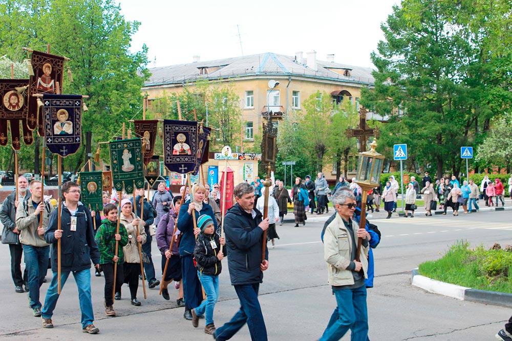 Прихожане храмов Щелковского благочиния прошли 9 км от Покровского храма г. Щелково до храма страстотерпца царя Николая г. Щелково.