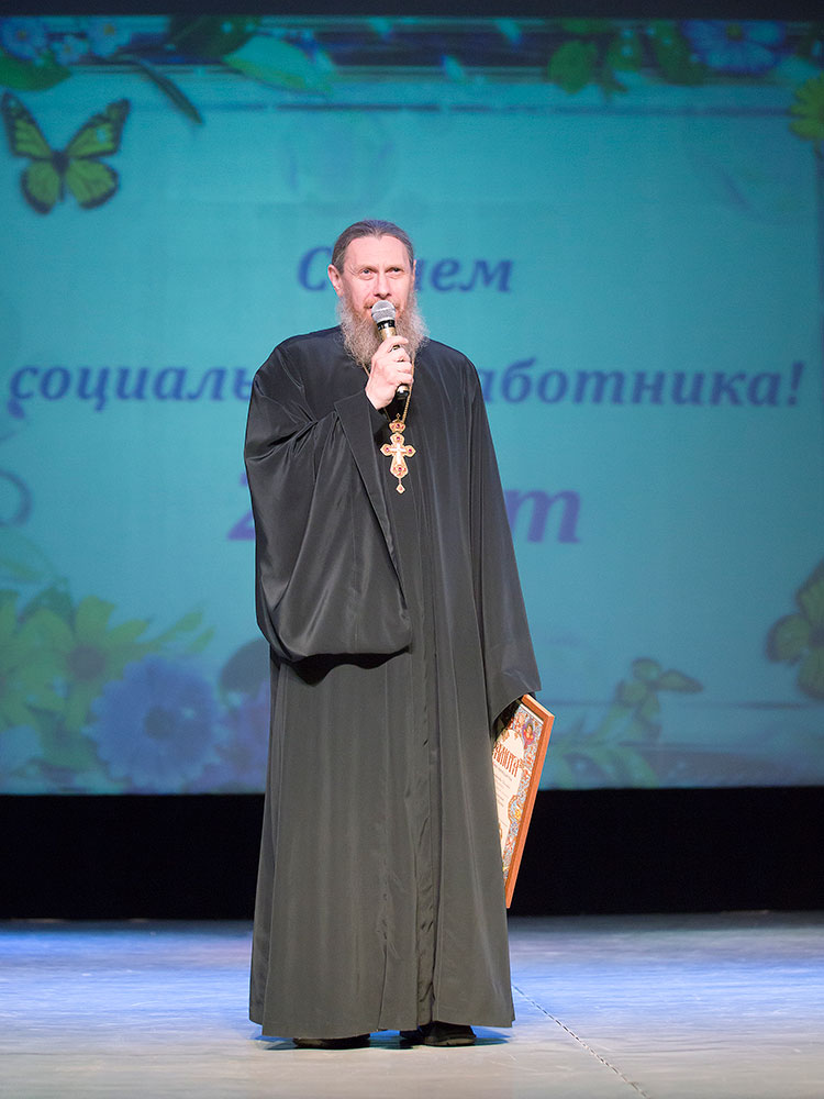 Ответственный отдела по благотворительности и социальному служению благочиния, настоятель Покровского храма г. Щелково протоиерей Алексий Никонов поздравил всех собравшихся и отметил важность и необходимость социальной работы, помощи пожилым людям, инвалидам и многодетным семьям.