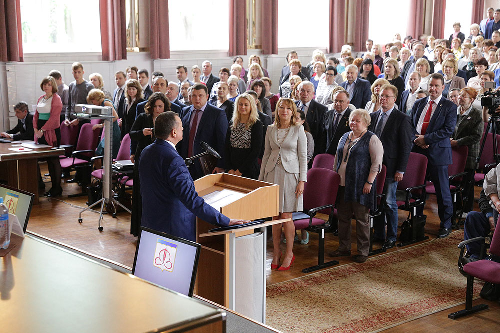 После церемонии вступления в должность главы Щелковского района Алексея Валова началось расширенное оперативное совещание в районной администрации.