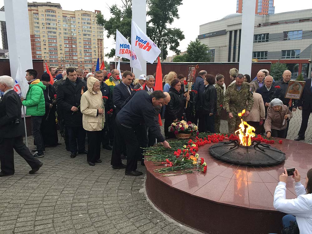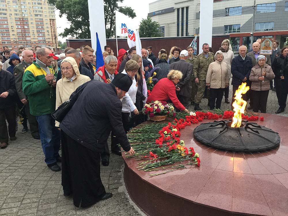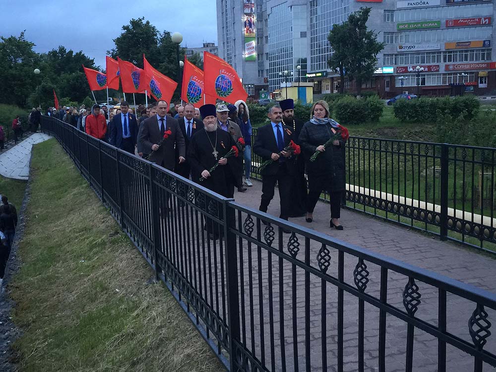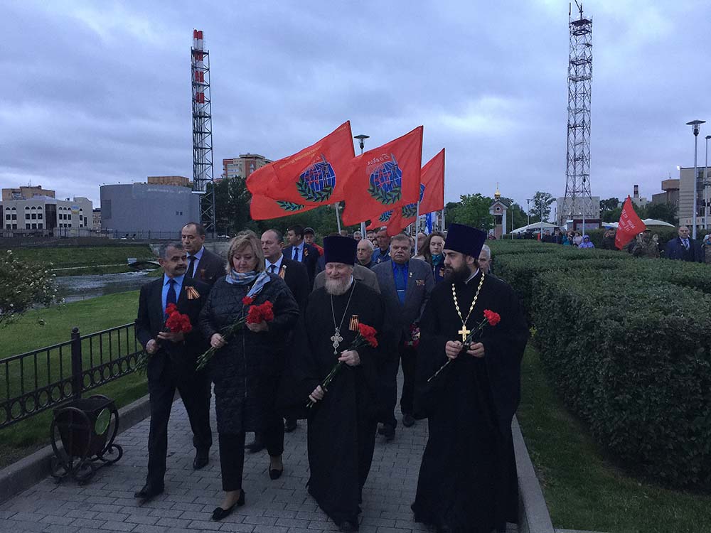 22 июня духовенство Щелковского округа с благочинным протоиереем Андреем Ковальчуком приняло участие в торжественном шествии и возложении цветов к Вечному огню на Аллее памяти.