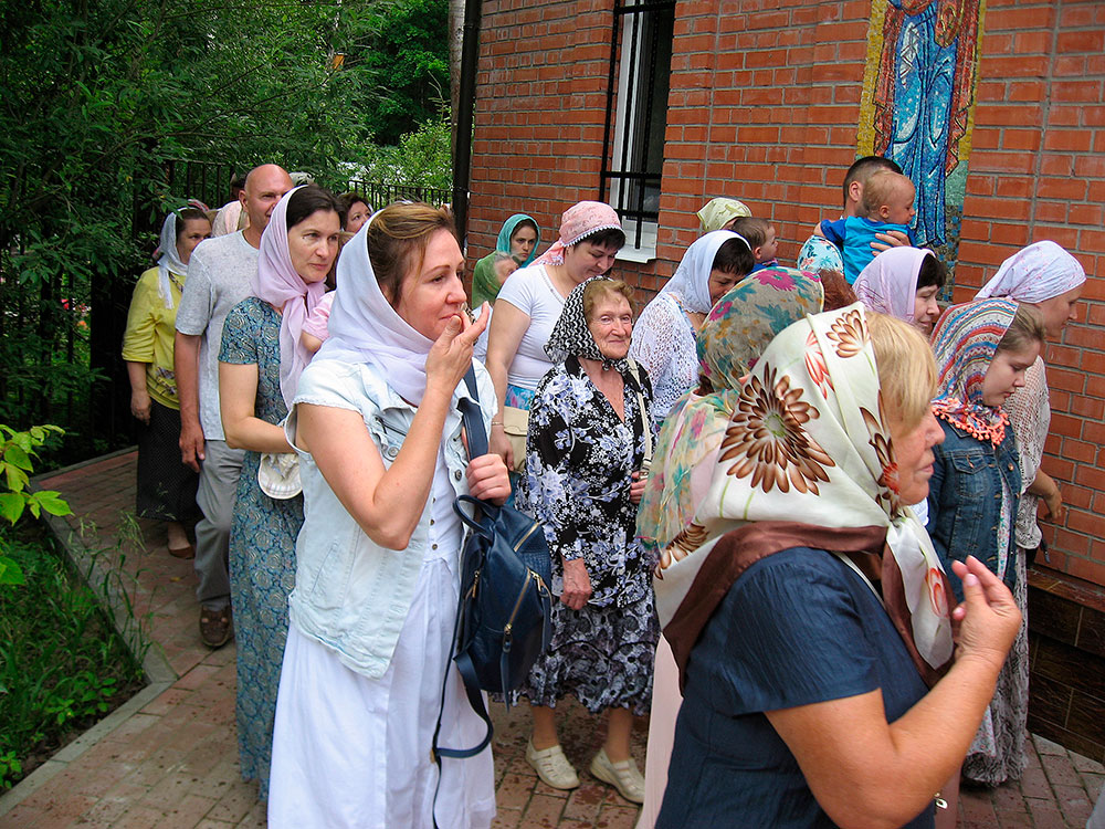 Ему сослужили настоятель храма священник Виктор Долгих, клирик храма иеромонах Никон (Сайфулин) и клирик Троицкого собора г. Щелково диакон Кирилл Ковальчук. После крестного хода отец Андрей обратился к прихожанам со словами проповеди, отметив огромное значение тех событий, которые проходили в годы правления князя Владимира, – попрание языческих идолов, Крещение Руси и принятие христианской веры. Отец Андрей вспомнил первого настоятеля Князь Владимирского храма, ныне почившего иеромонаха Василия (Полухина), благодаря усердным трудам которого был построен этот храм.