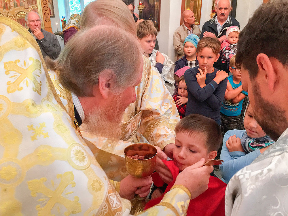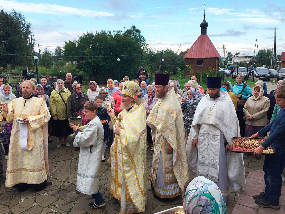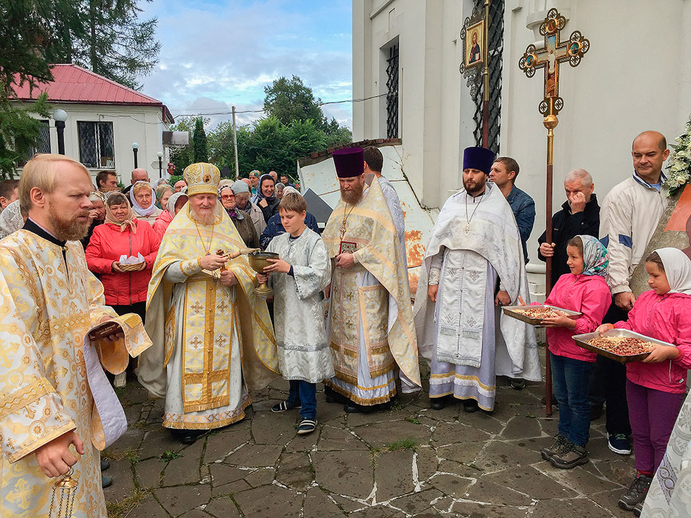 Многие прихожане Спасского храма в этот день причастились Святых Христовых Таин. После Божественной Литургии был совершен крестный ход вокруг храма. После крестного хода отец Андрей обратился к прихожанам со словами поздравления с главным приходским праздником.