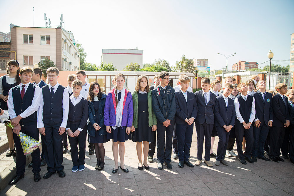 Праздник продолжился торжественной линейкой на улице перед собором, где собрались учащиеся, их родители и учителя.