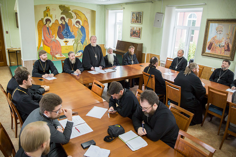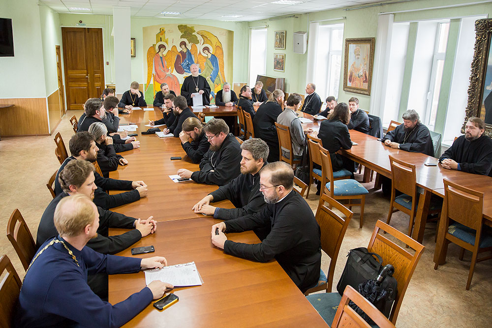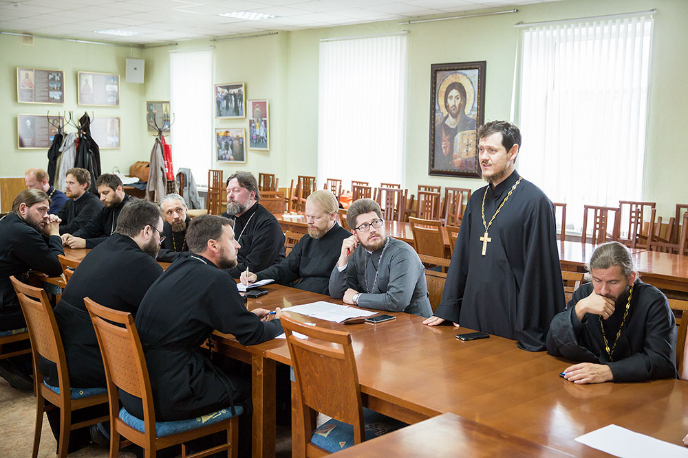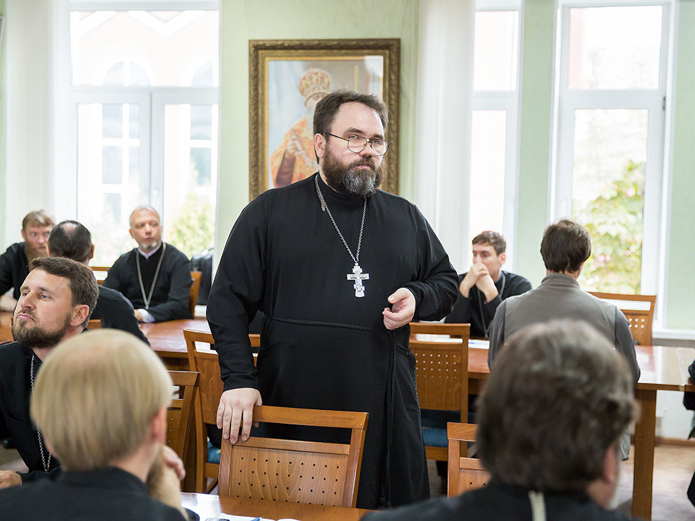 В конце собрания прошел пастырский семинар доцента Московской духовной академии, заведующего кафедрой Церковно-практических наук Общецерковной аспирантуры и докторантуры имени святых равноапостольных Кирилла и Мефодия священника Михаила Желтова «Отпусты».