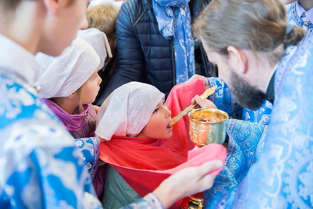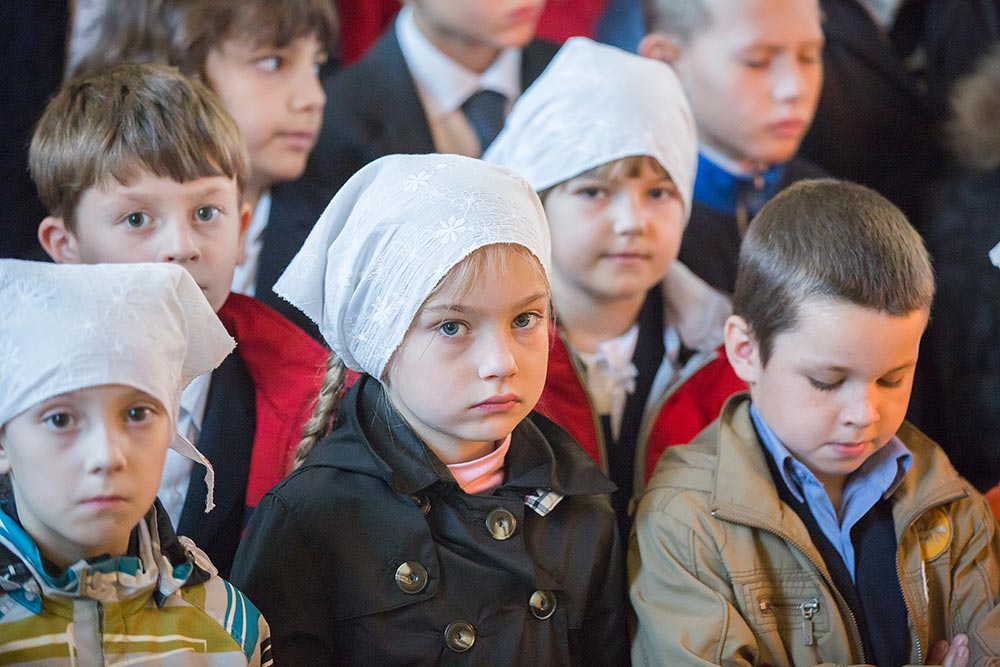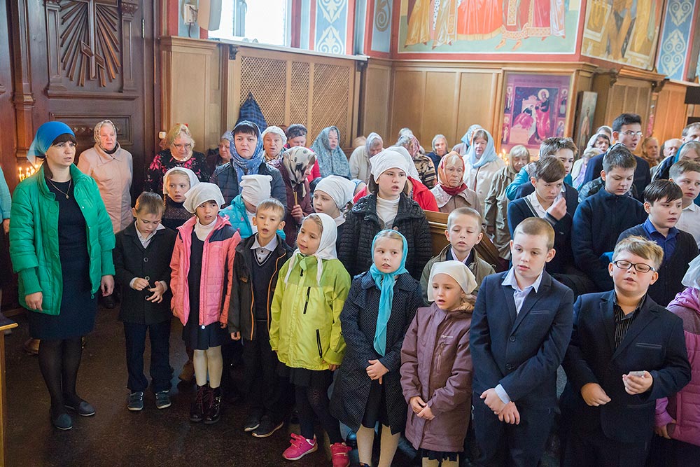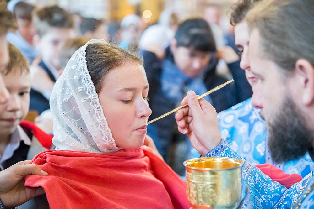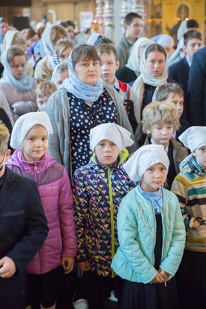 За богослужением молились учащиеся православной гимназии "Ковчег", многие из которых в этот день причастились Святых Христовых Таин.