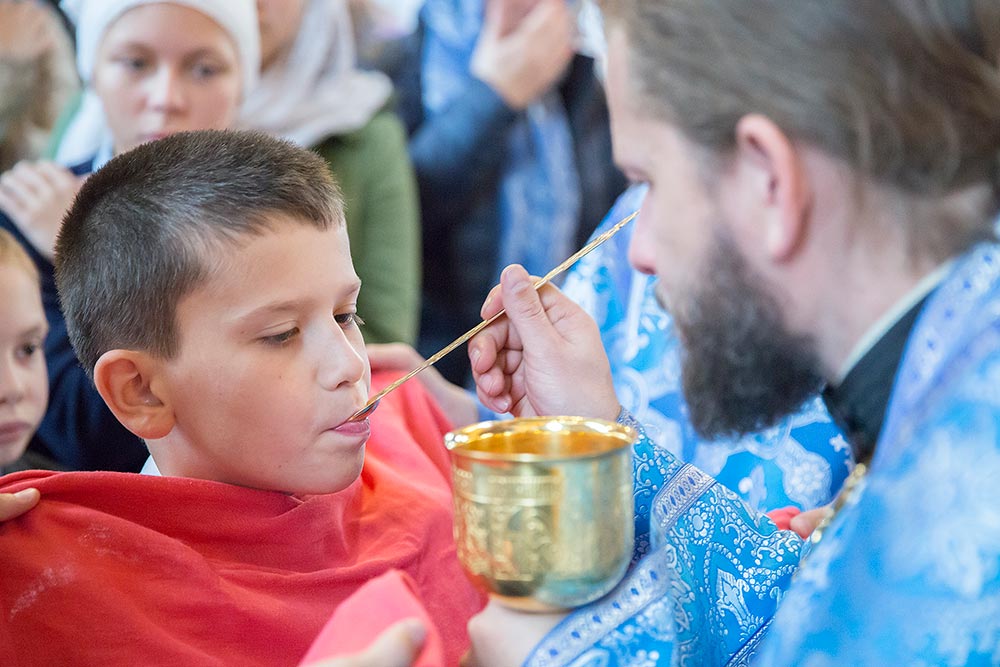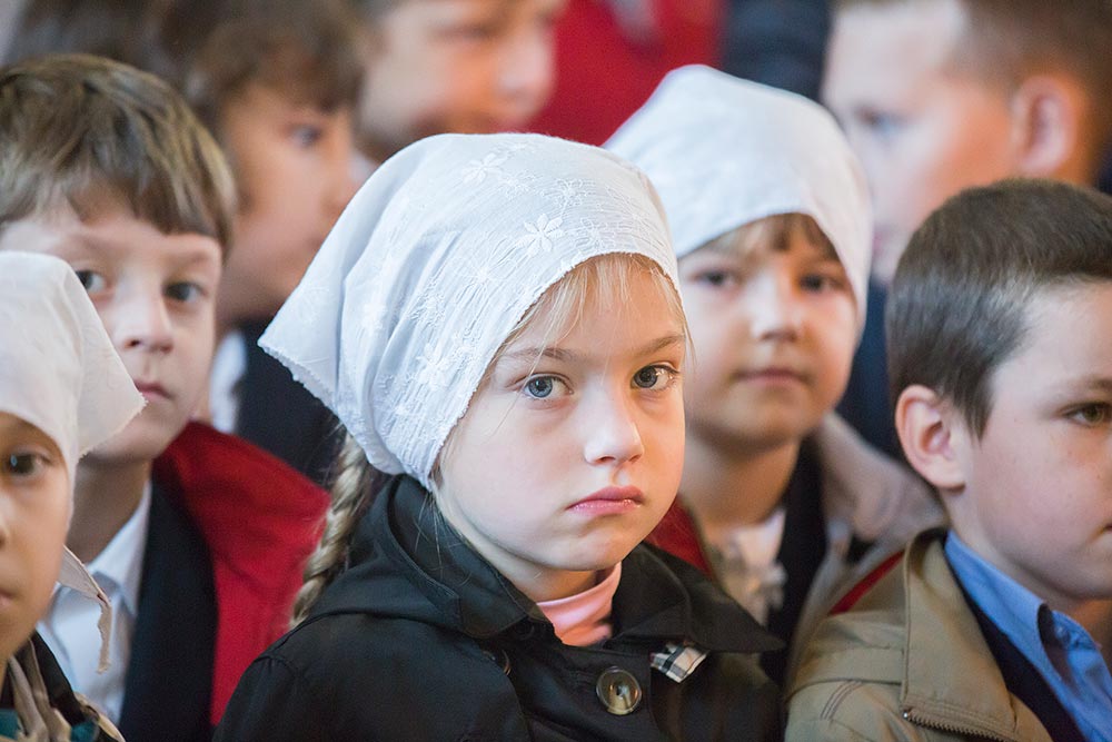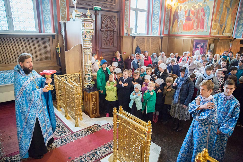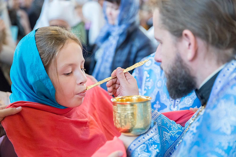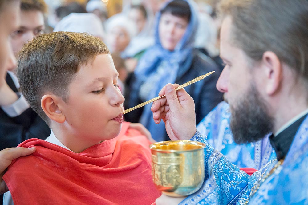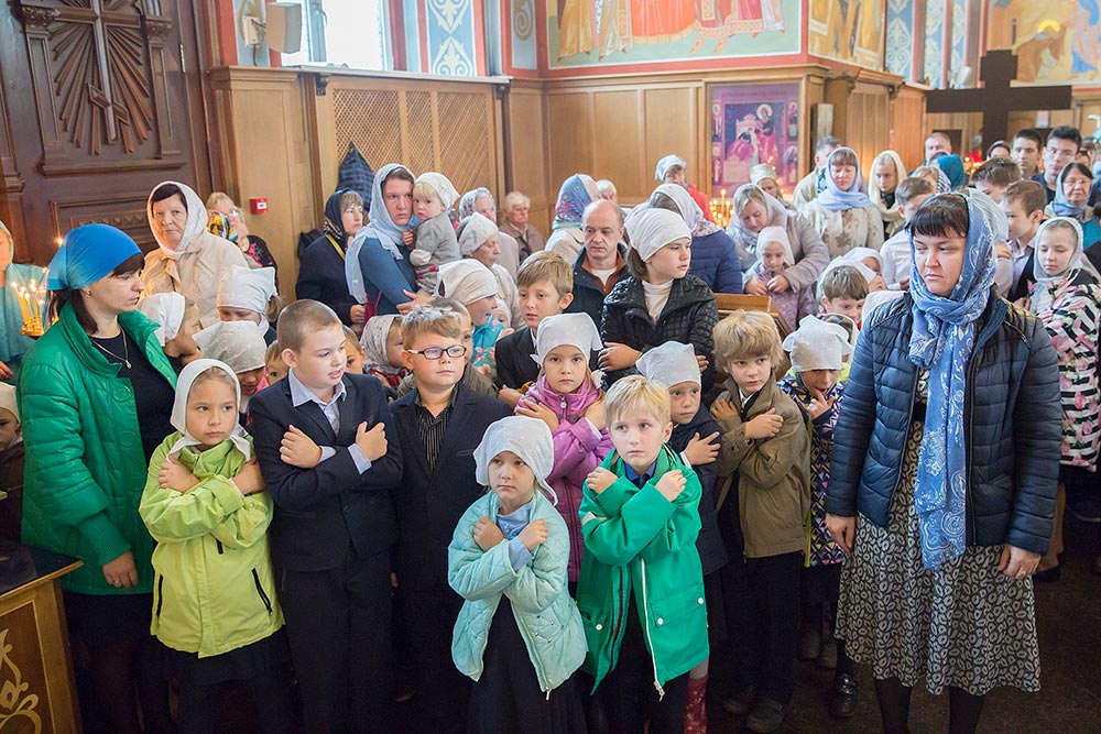 За богослужением молились учащиеся православной гимназии "Ковчег", многие из которых в этот день причастились Святых Христовых Таин.