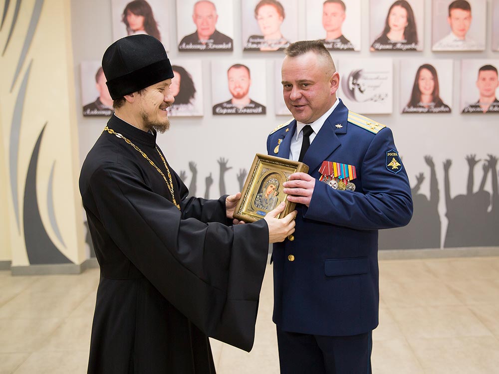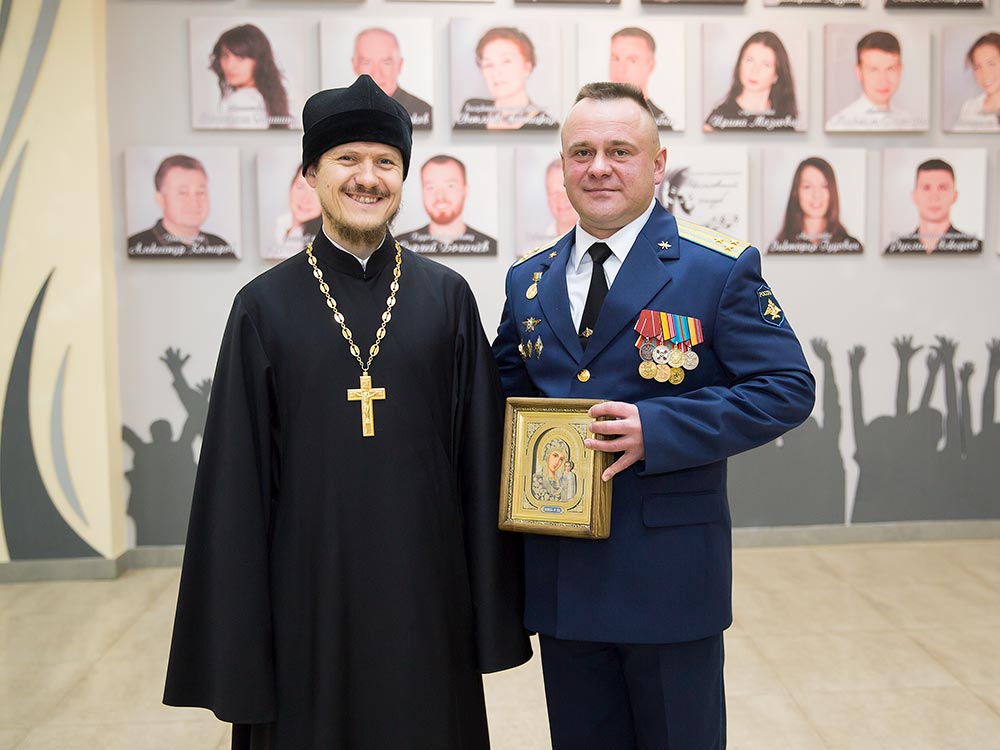 В этот день военнослужащих пришли поздравить Председатель Совета депутатов Щелковского муниципального района Н.В. Суровцева, заместитель главы Администрации Щелковского муниципального района Ю.Н. Радионов, депутат Московской областной Думы В.Н. Шапкин, командир части Д.В. Самохин, ответственный по работе с вооруженными силами и правоохранительными учреждениями Щелковского благочиния священник Димитрий Выдумкин. Отец Дмитрий вручил командиру части икону Божией Матери «Казанская».