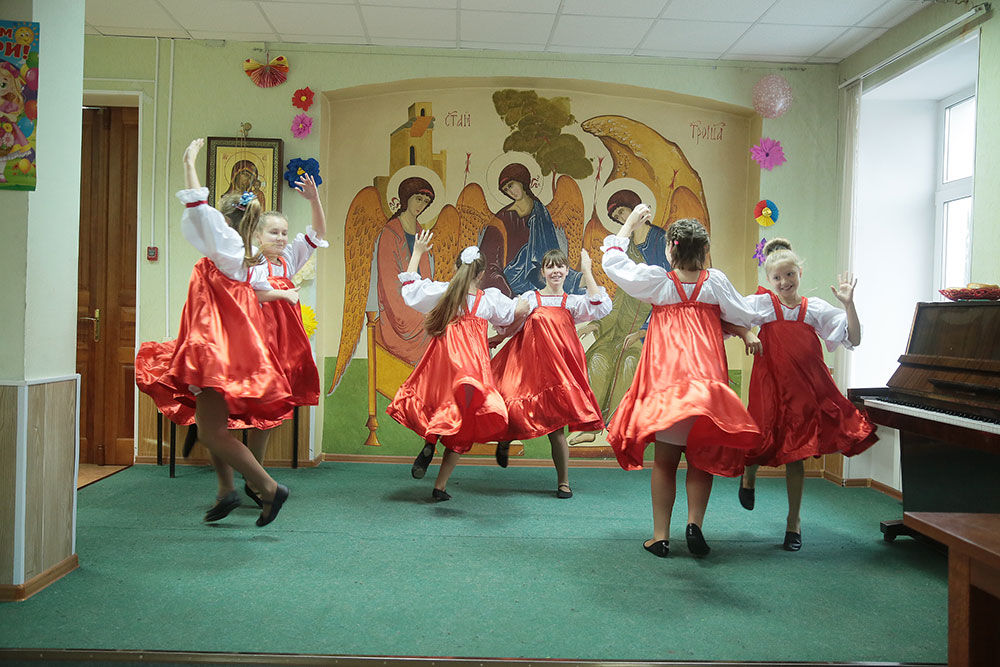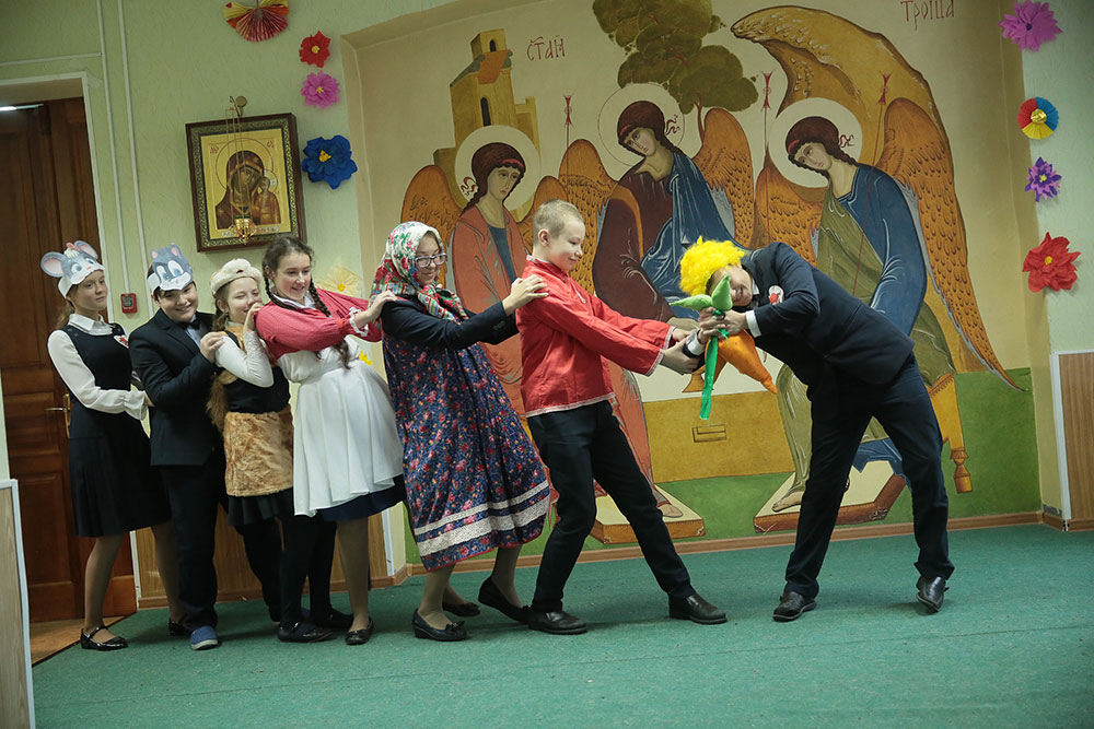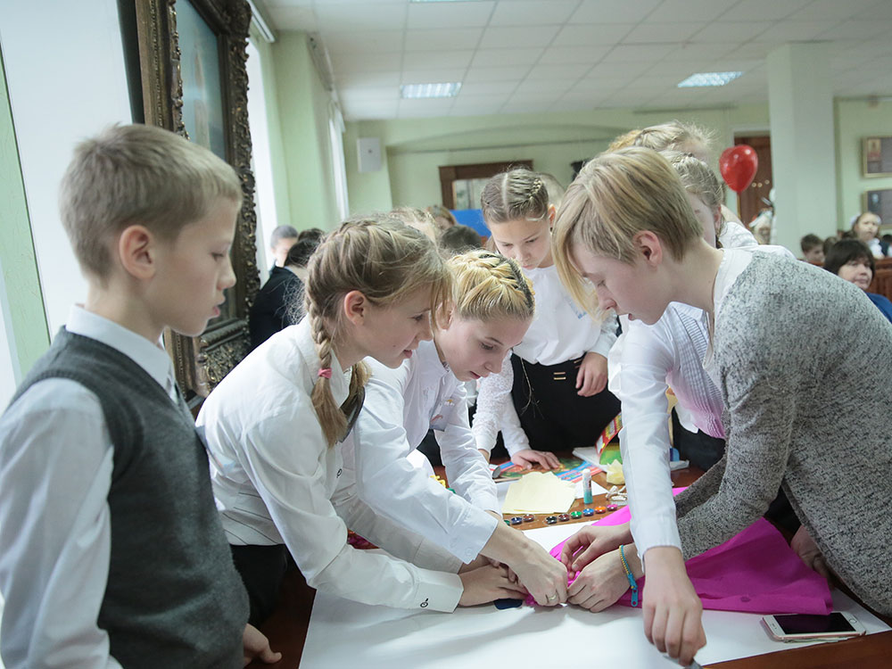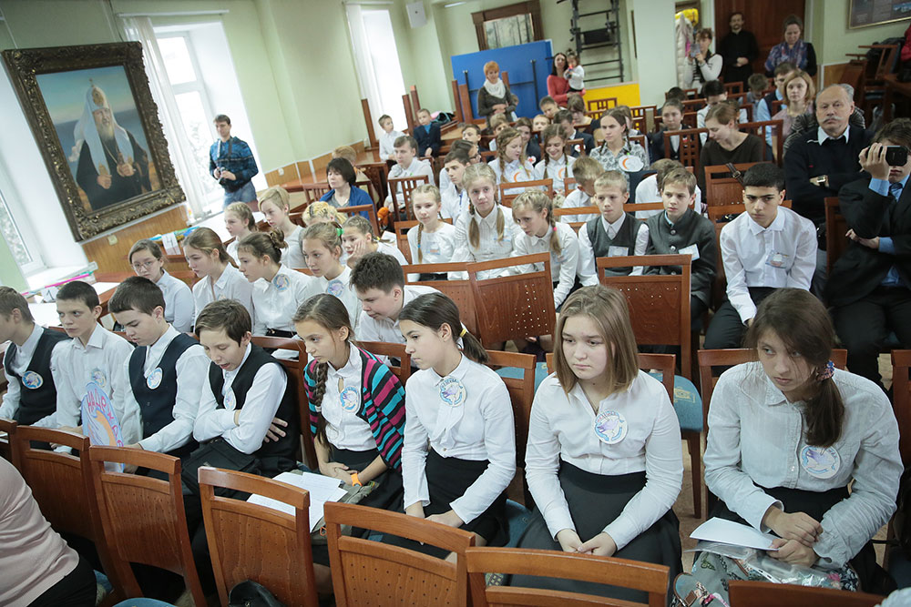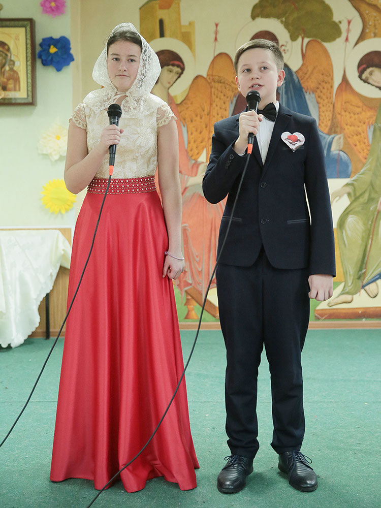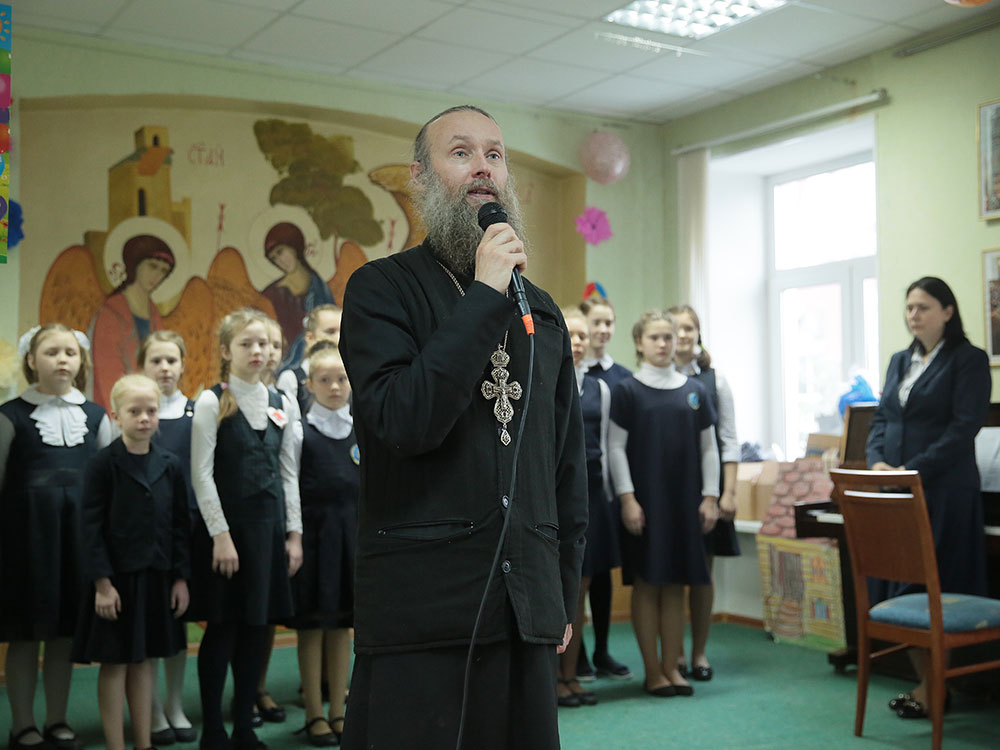 В нем участвовали дети из четырех отделений: г. Щелково, г. Королева, с. Душоново, с. Анискино. Праздник начался с Божественной литургии в Троицком соборе, которую возглавил директор гимназии протоиерей Алексий Новичков. Ему сослужил духовник Щелковского отделения гимназии священник Максим Алифанов. После богослужения дети были приглашены в конференц-зал.