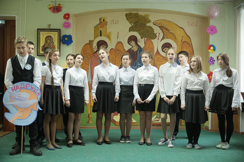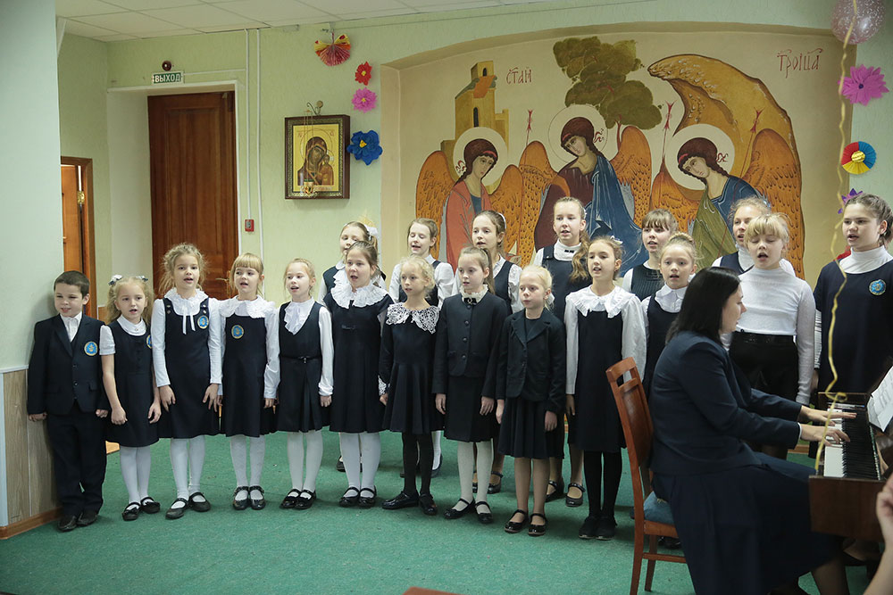 Старший хор Щелковского отделения гимназии под руководством А.А. Медведевой исполнил два песнопения В. К. Ковальджи: «Милосердия двери отверзи нам», «Не имамы иныя помощи». Младший хор исполнил песню «Красивая мама» из кинофильма Денискины рассказы, музыка Э. Колмановского, слова С. Богомазова.