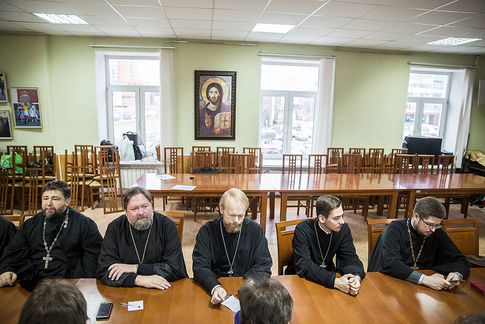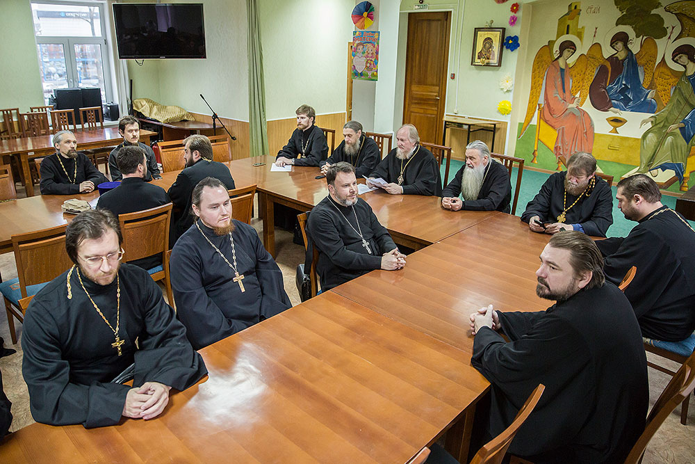 О работе приходских сайтов доложил священник Димитрий Третьяков, о взаимодействии с вооруженными силами и правоохранительными учреждениями сообщил священник Димитрий Выдумкин, о работе с молодежью рассказал священник Александр Мороков.