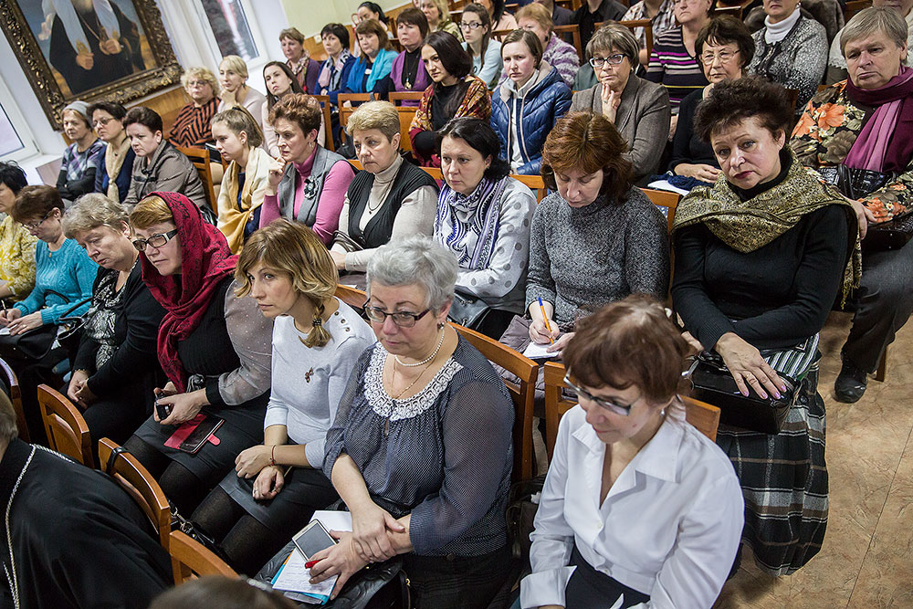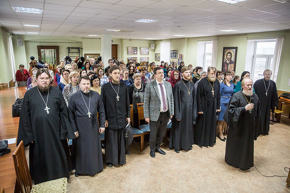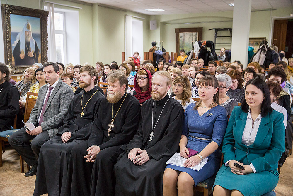 Заместитель заведующего по УВР Православной гимназии А.В. Лыгина выступила с докладом: "Роль учителя в нравственном воспитании личности": опыт разработки программы повышения квалификации "Основы православного богословия и педагогики" для учителей православных общеобразовательных учреждений", в котором раскрыла свой личный опыт работы в этом направлении.