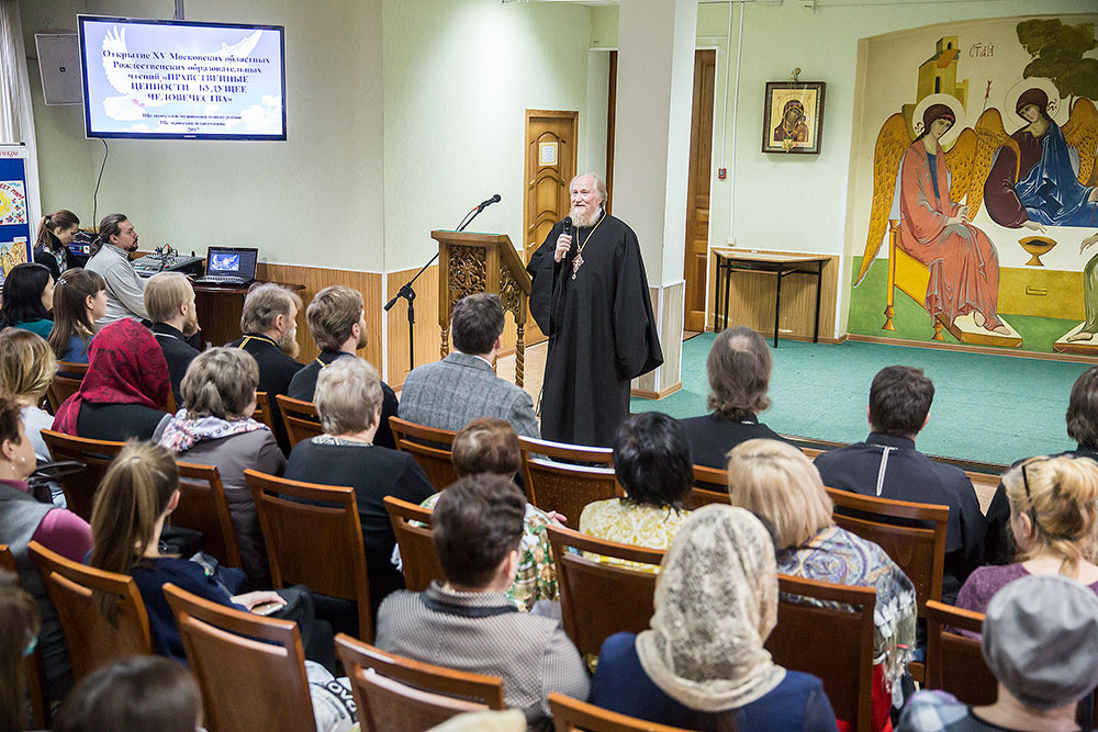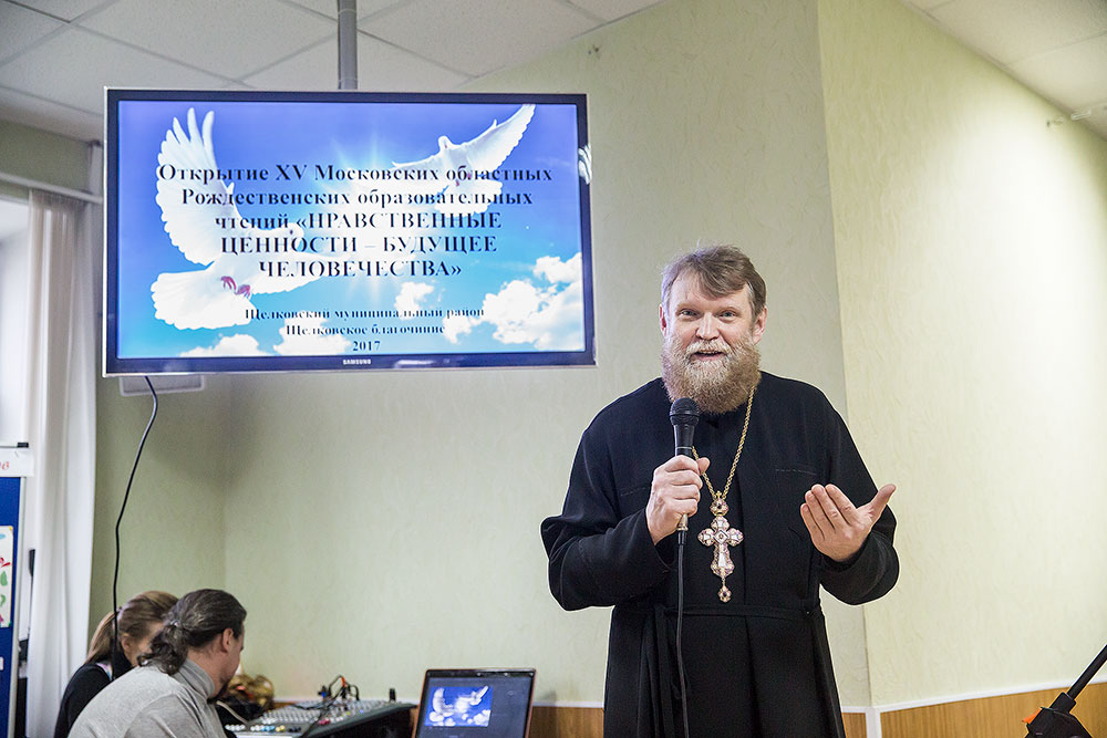 С приветственным словом к собравшимся обратились благочинный церквей Щелковского округа протоиерей Андрей Ковальчук и председатель Комитета по вопросам образования Щелковского муниципального района Г. Б. Поляковский.