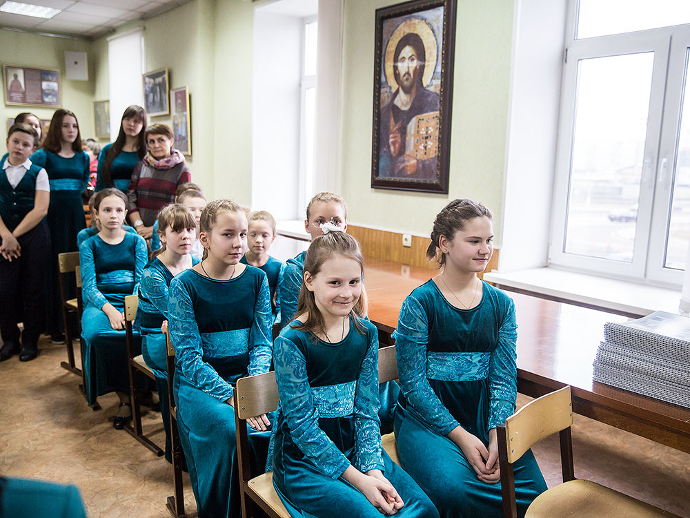 Хор Щелковского отделения гимназии «Ковчег» под руководством А.А. Медведевой исполнил два песнопения В. К. Ковальджи: «Милосердия двери отверзи нам», «Не имамы иныя помощи». Учитель музыки гимназии Т.В. Земцова исполнила романс на фортепиано Г. Свиридова "Метель".