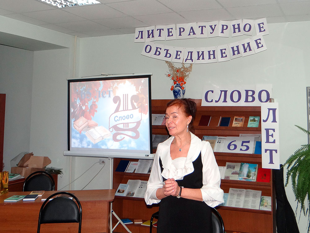 Заместитель председателя ЛИТО по организационным вопросам – ведущая вечера Терентьева О.П. представила гостям, присутствующим в зале, презентацию об истории Литературного объединения «Слово» о его создателях и руководителях А. Хуторянине, В. Трифонове, В. Кордюкове, Э. Пузырёве, И. Рудакове, П. Наживове, Б. Ванькове. О своём вкладе в становление и развитие объединения рассказал известный щёлковский поэт И.Рыбаков.