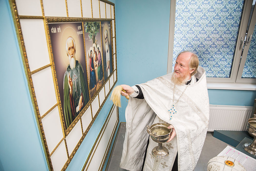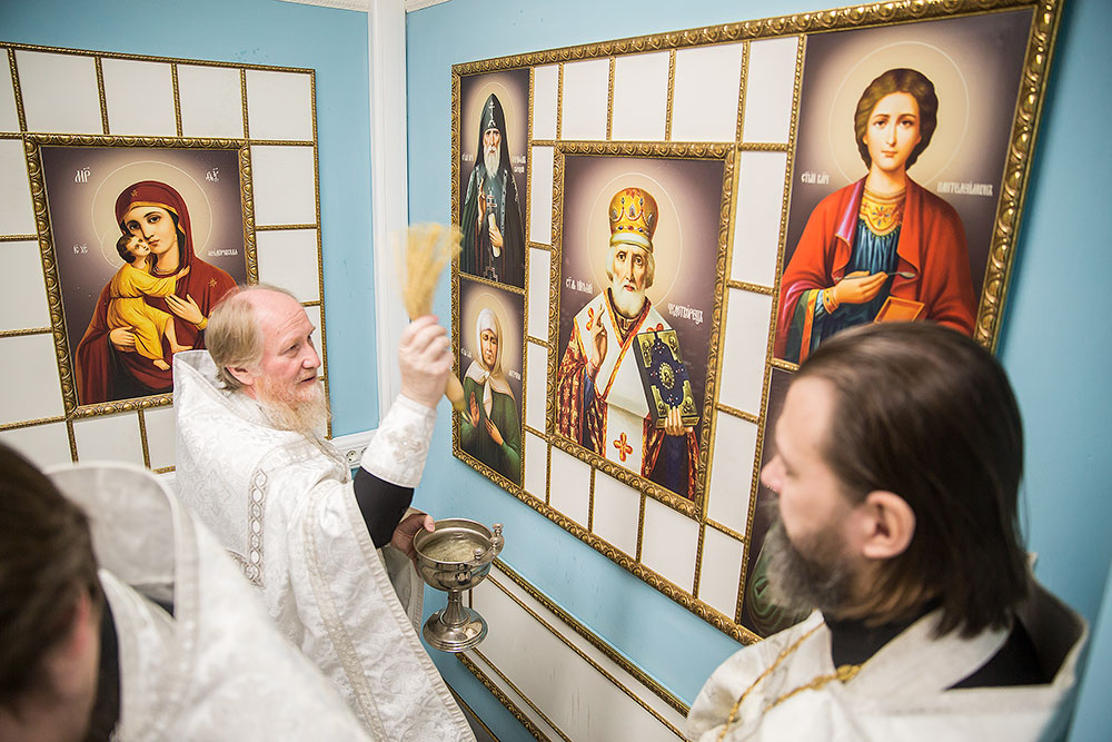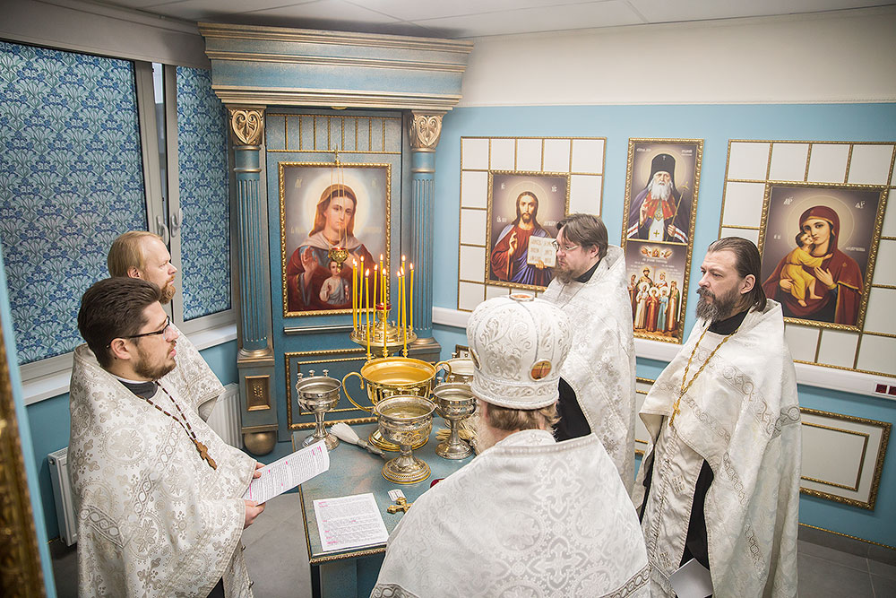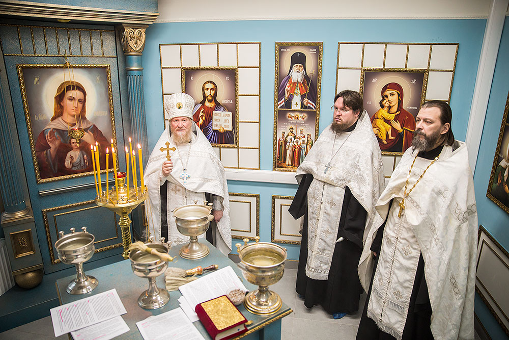 Чин освящения молитвенной комнаты в честь иконы Божией Матери «В родах Помощница» совершил благочинный Щелковского округа протоиерей Андрей Ковальчук в сослужении клириков благочиния священников Антония Сенько, Димитрия Третьякова, Александра Амелина и Димитрия Медведева.