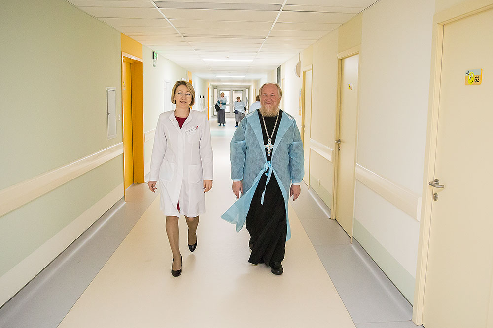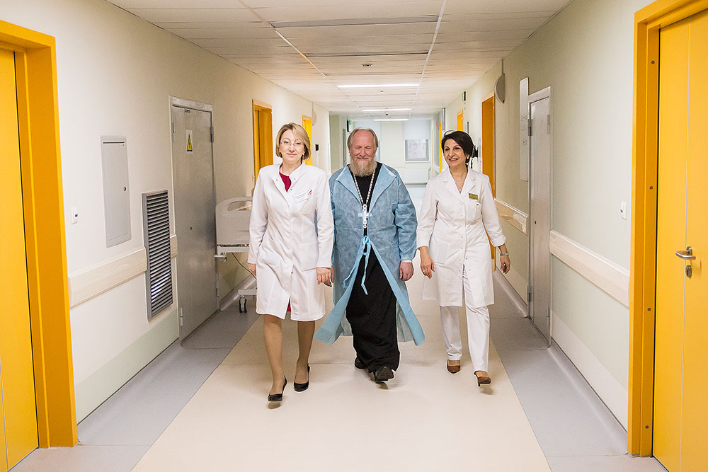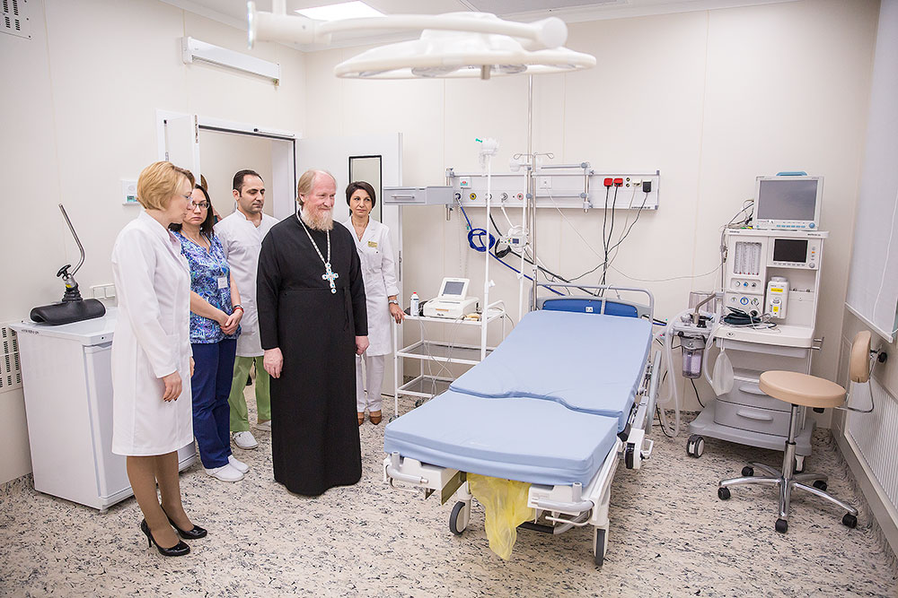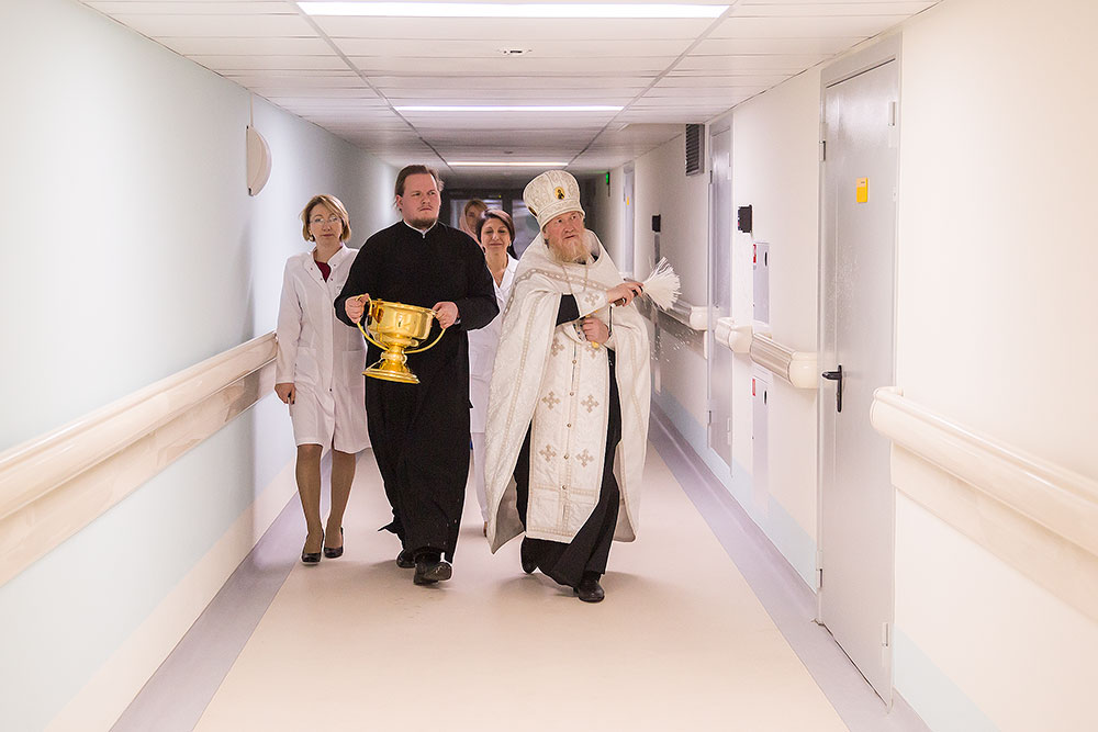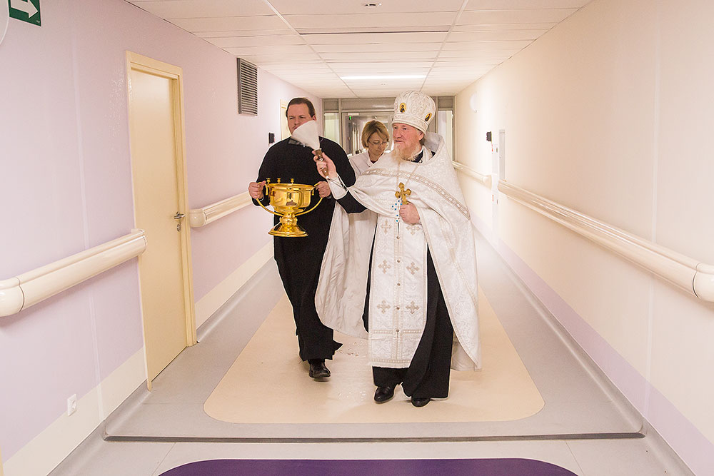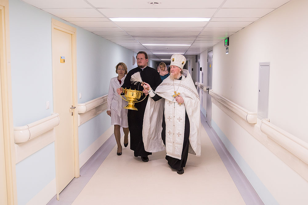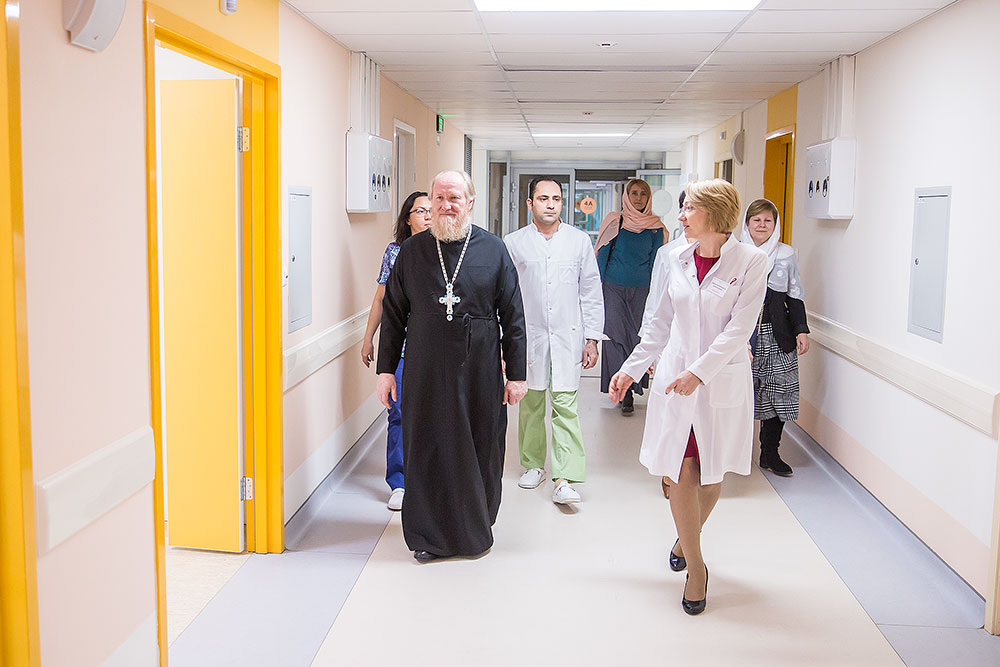 После освящения, главврач Виноградова Ирина Валерьевна провела отцу Андрею обзорную экскурсию по основным отделениям перинатального центра. Батюшка пообщался с роженицами и дал им пастырское напутствие.