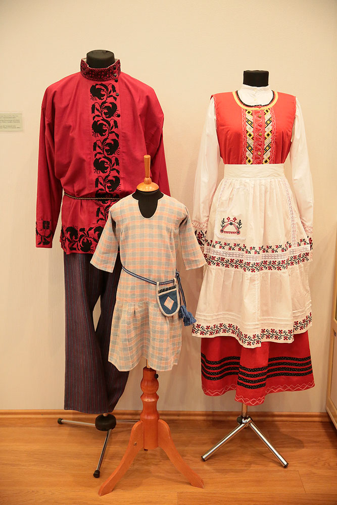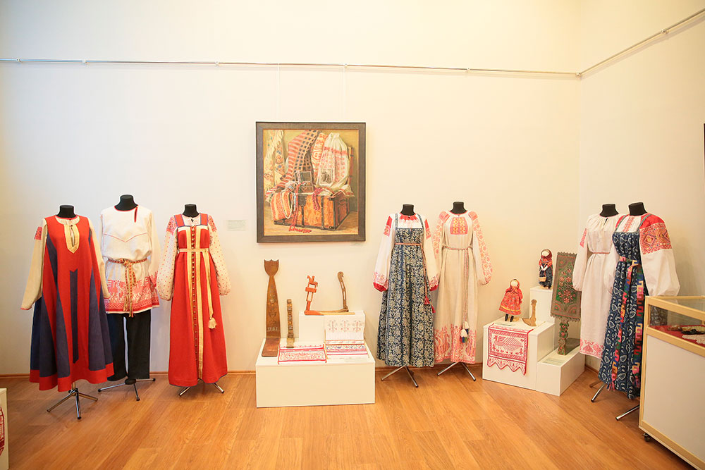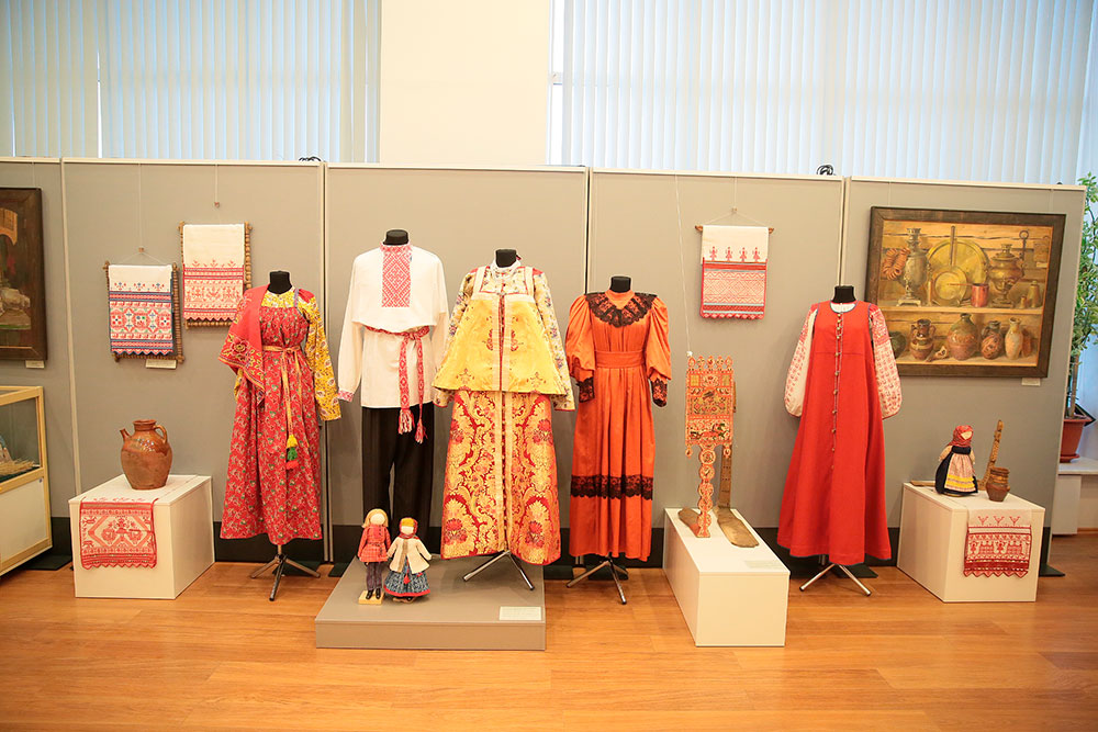 На экспозиции выставки посетителям представлены лучшие коллекции, которые часто демонстрируются на всероссийских и международных фестивалях в нашей стране и за рубежом: «Праздничный костюм Олонецкой губернии начала XVIII - середины XIX вв.», «Ильин день» (Покосный костюм Ошевенской волости Каргопольского уезда Олонецкой губернии конца XIX - начала XX вв.), «Мезенская свадьба», «Праздничный мужской костюм», «Таганрогские полотенца», украшения, этнографические подлинники, детские игрушки.