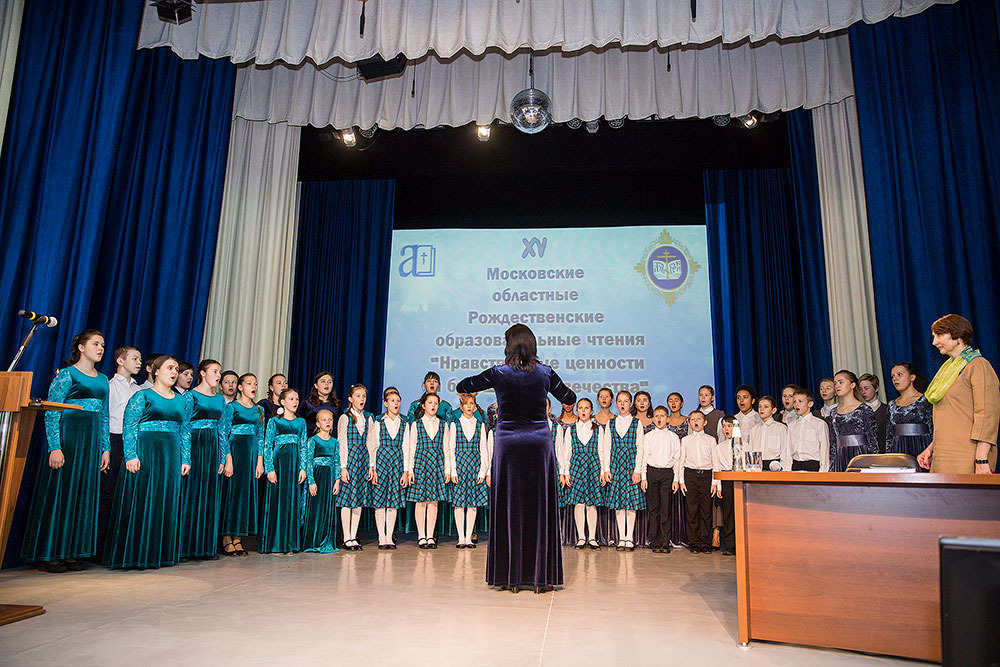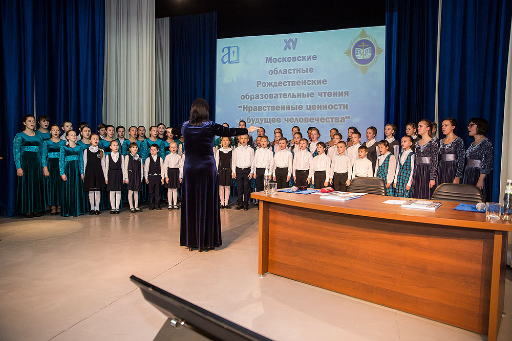В начале конференции Детский сводный хор Щелковского и Лосино-Петровского благочиний и православной гимназии «Ковчег» под руководством А.А. Медведевой исполнил тропарь Рождества Христова.