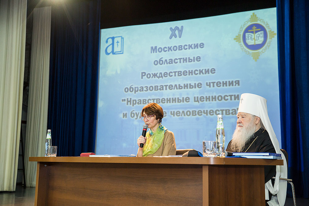 Заседание продолжилось выступлением министра образования Московской области М. В. Захаровой, во время которого была представлена книга «Возвещая слово доброе» посвященная 15-летию Московских областных Рождественских образовательных чтений.