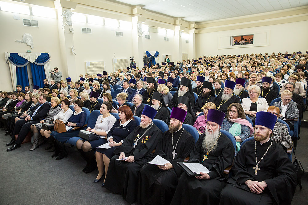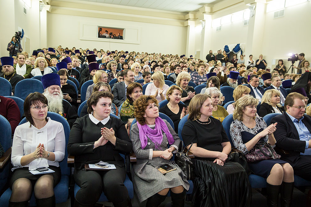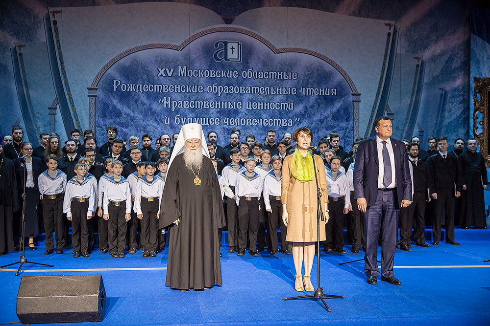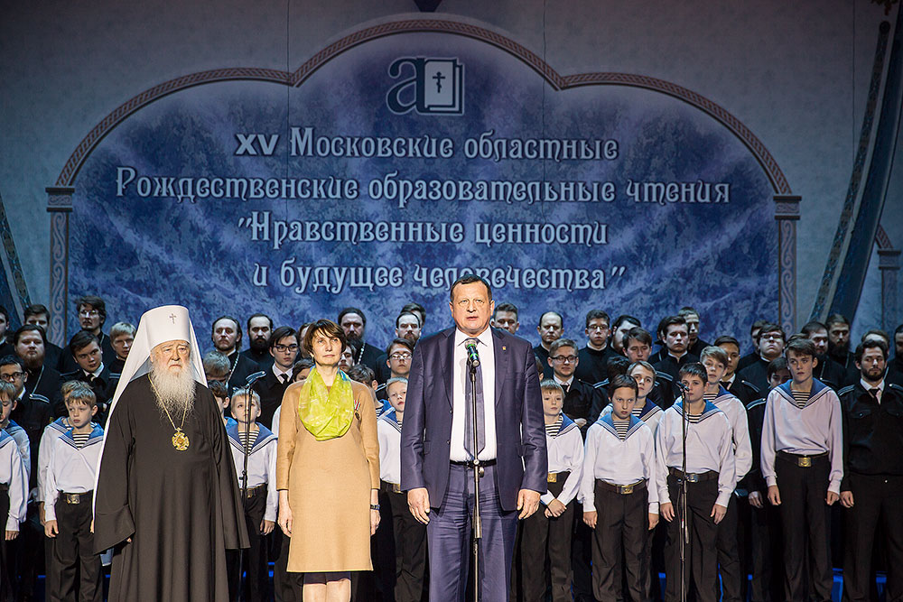 Перед началом концерта его слушателей, священников и педагогов, собравшихся со всей Московской области, приветствовал митрополит Ювеналий. Владыка вручил Патриаршие юбилейные медали «В память 100-летия восстановления Патриаршества в Русской Православной Церкви»: министру образования Московской области М. Б. Захаровой, первому заместителю министра образования Н. Н. Пантюхиной и профессору кафедры педагогики ГОУ ВПО «Московского государственного областного университета», директору Духовно-просветительского культурного центра им. просветителей славянских Кирилла и Мефодия Л.Л. Шевченко.
