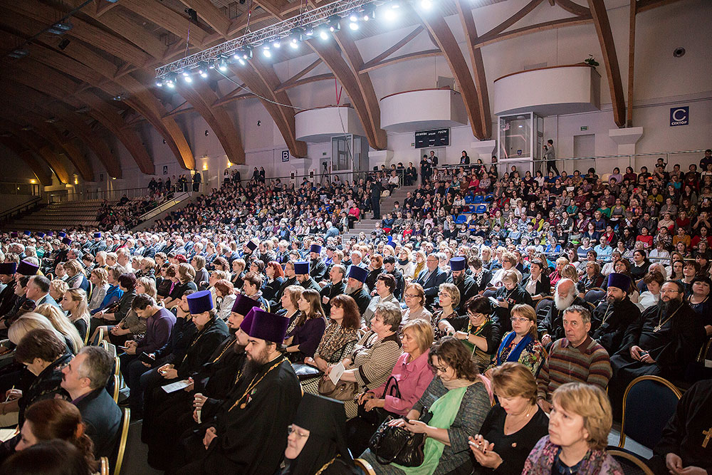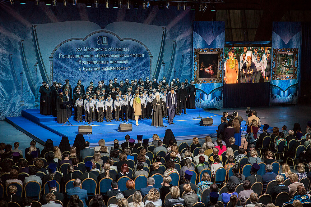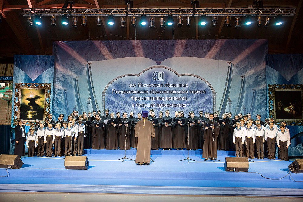 Далее все участники конференции проследовали в Универсальный спортивный комплекс "Подмосковье", где состоялся праздничный концерт — литературно-музыкальное действо, подготовленное двумя церковными хорами: Хором духовенства Московской епархии под управлением священника Сергия Голева и Ушаковским хором мальчиков и юношей Успенского храма г. Красногорска под управлением Надежды Зининой. Вели мероприятие преподаватель Коломенской духовной семинарии иеромонах Алексий (Куклев) и студент семинарии Даниил Барский. Режиссером концерта был священник Сергий Голев.