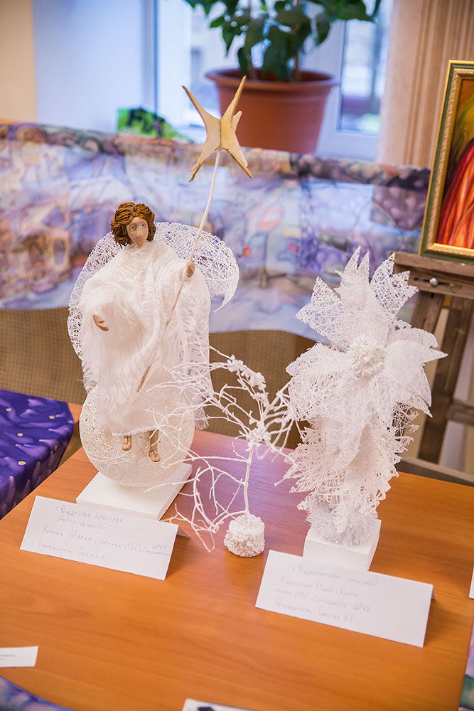 Среди призеров (2 место) учащиеся православной гимназии «Ковчег», которые представили работу «Рождество Христово» в технике художественное выпиливание по дереву ручным способом. Конкурсное изделие создавалось на уроках технологии и занятиях кружка «Чудо-лобзик» под руководством учителя А.В. Лыгиной. Работа представляет собой композицию, отражающую библейское событие Рождества Христова, представленную из отдельных фигур, выпиленных из фанеры: вертеп Рождества Младенца Христа, Ангел, возвещающий весть пастухам, спешащие с дарами волхвы, а также традиционную для нашего времени нарядную рождественскую елочку, с праздничными украшениями. Мальчики с 5 по 10 класс внесли свою лепту в общее дело, выпилив один из элементов композиции. На конкурсе были представлены и изделия младших гимназистов, под руководством учителя Урюковой Ирины Станиславовны выполнивших панно, посвященные тематике Рождества Христова.