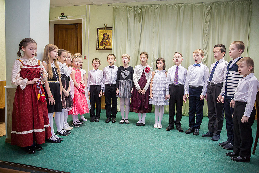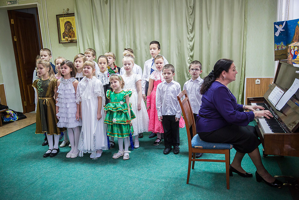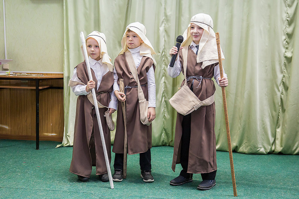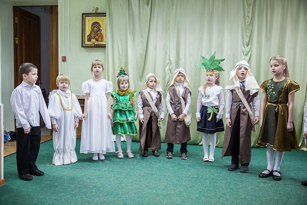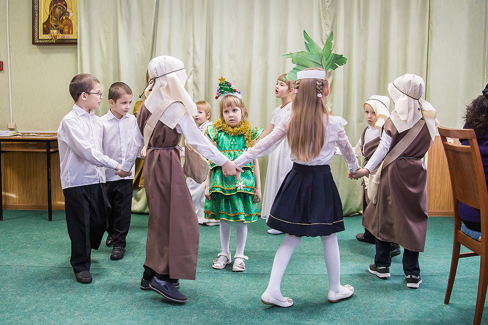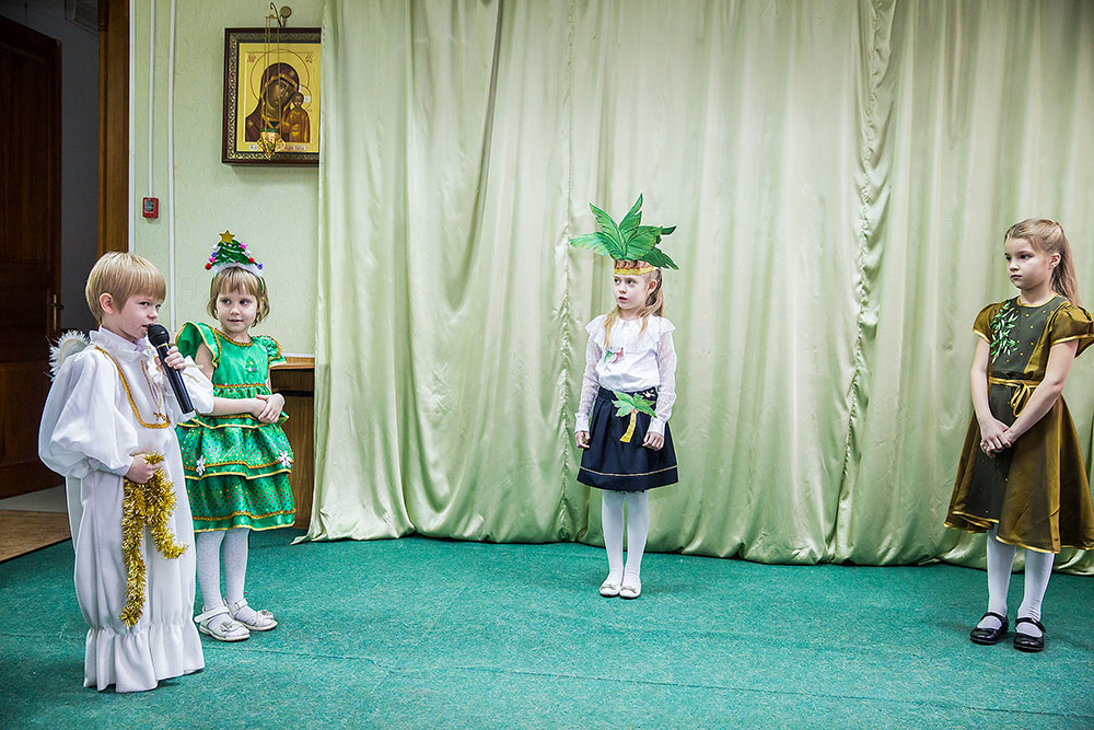 Младшая группа под руководством Ирины Илларионовой и Евгении Матюниной показала театрализованную постановку "Три дерева". Воспитанники старшей группы исполнили авторскую композицию "Рождественское чудо" Ирины Илларионовой на стихи монаха Варнавы (Санина).