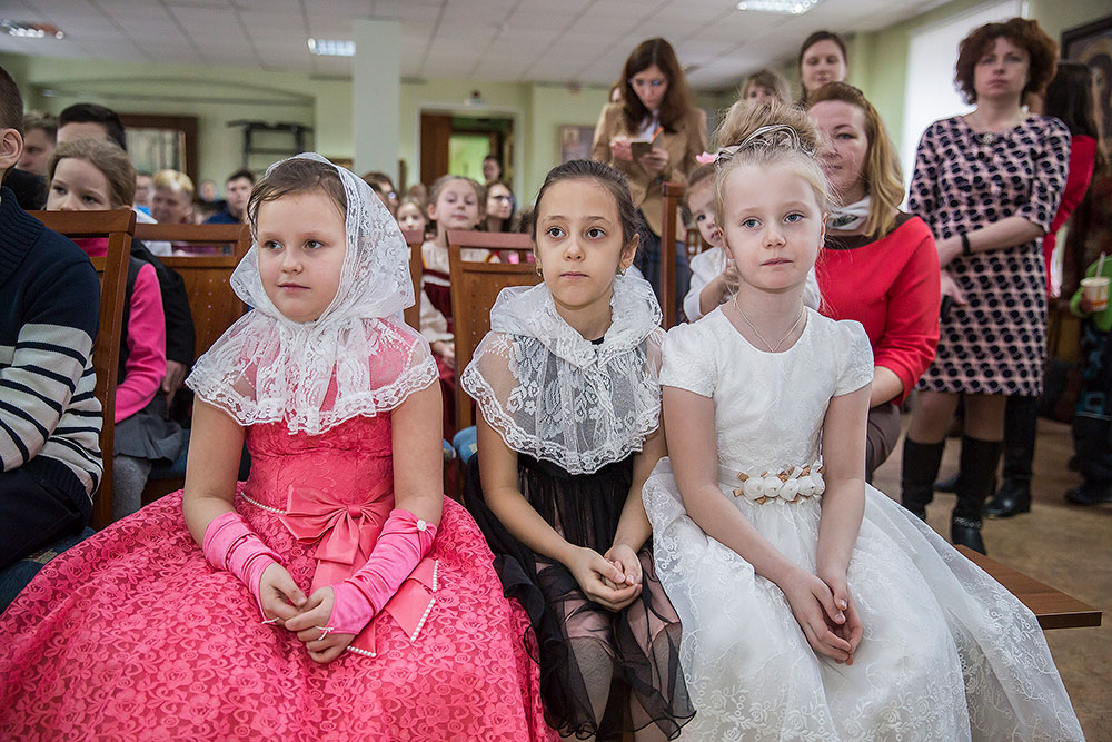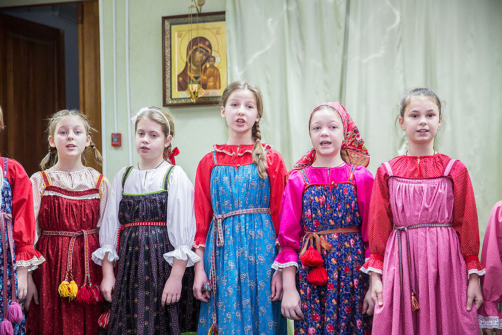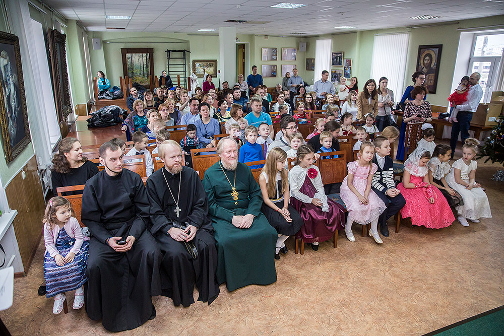 Затем торжества продолжились в полном гостей конференц-зале, где собрались дети и родители - прихожане Троицкого Собора. После вступительного исполнения хором воскресной школы канонических песнопений Рождества Христова ребятами были представлены разнообразные номера.