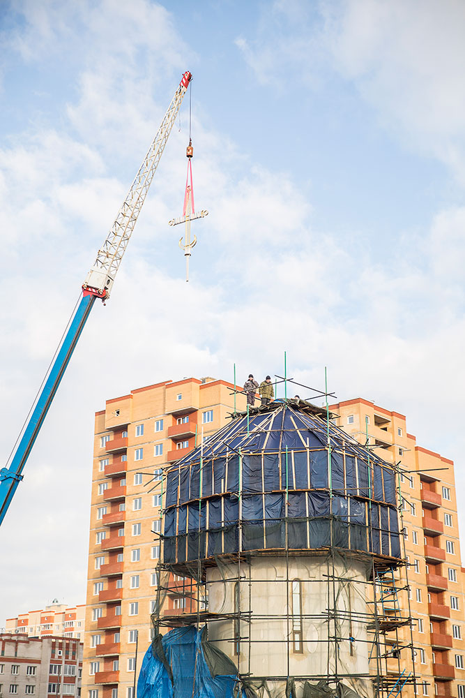 7 января, в день Рождества Христова, благочинный церквей Щелковского округа протоиерей Андрей Ковальчук возглавил чин освящения креста и его водружение над куполом Державного храма города Фрязино.