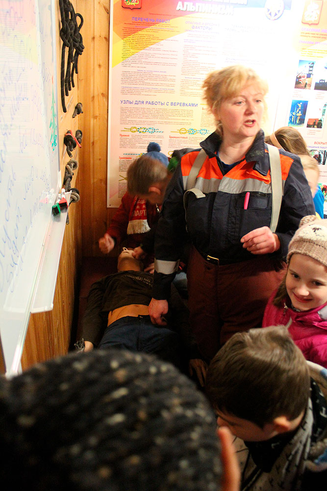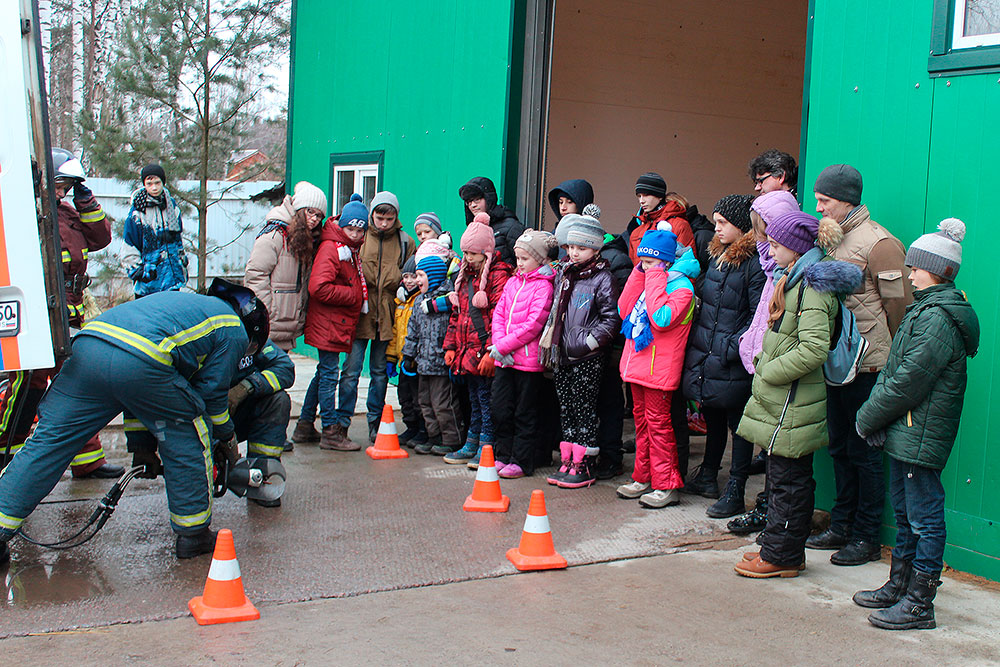 Начальник отряда Моисеев П. С. познакомил ребят с основными направлениями действий сотрудников отряда. Сотрудник отряда Дмитричева О. В. провела экскурсию по расположению отряда и подробно рассказала о тренировках навыков оказания первой медицинской помощи пострадавшим. В учебном классе отряда ребята смогли потренироваться в навыках оказания первой помощи на учебных манекенах. Сотрудниками отряда были показаны навыки работы с гидравлическим оборудованием, применяемым для оказания помощи при техногенных катастрофах. Завершилась экскурсия рассказом о проводимых операциях по поиску потерявшихся в лесах людей и пожеланиям приобретения ребятами навыков и опыта быть осторожными, и уметь оказывать первую помощь.