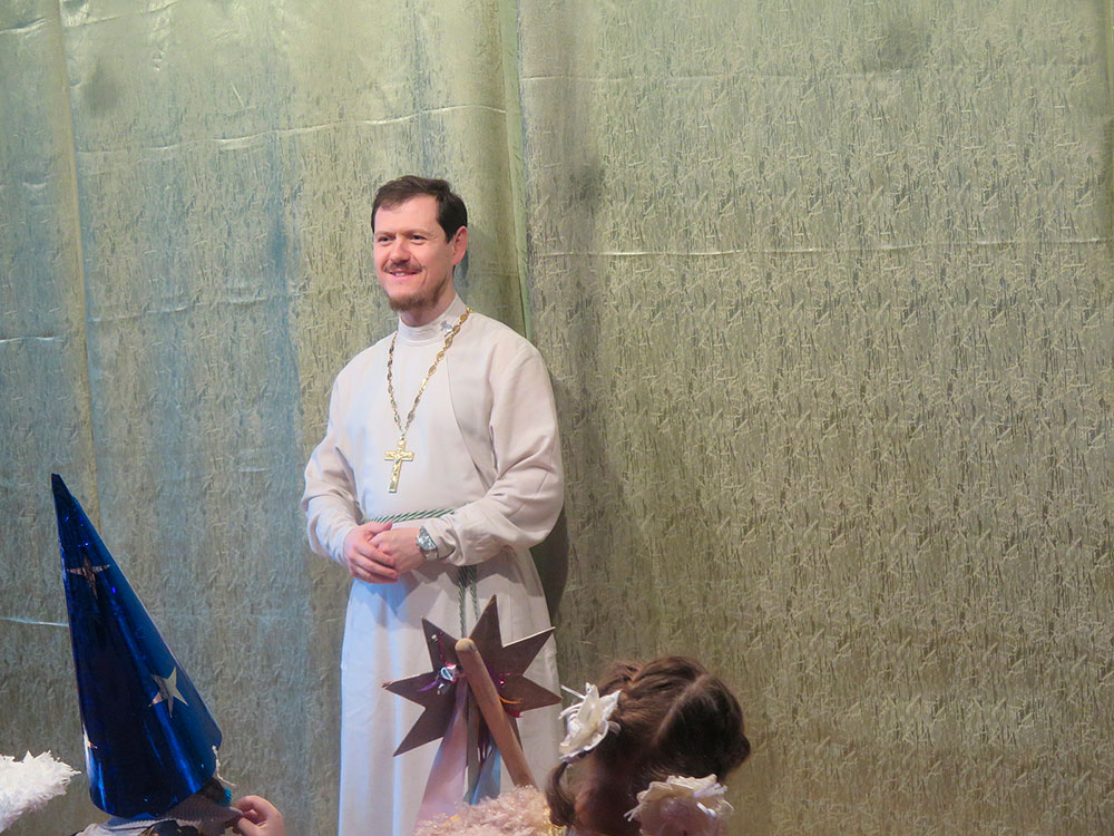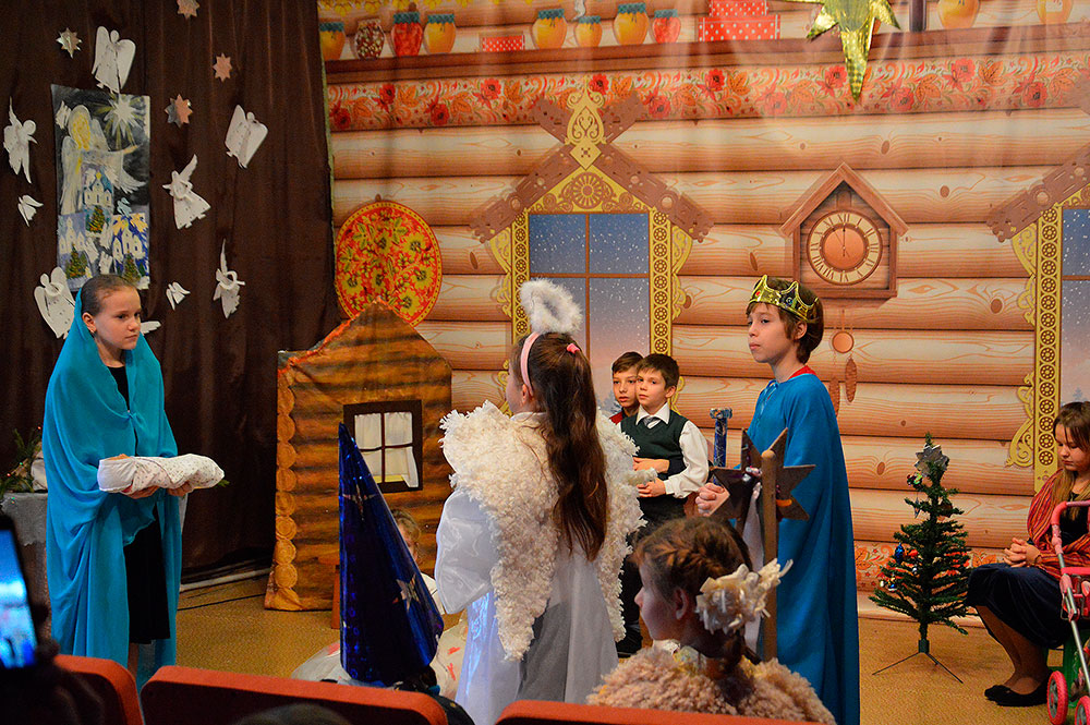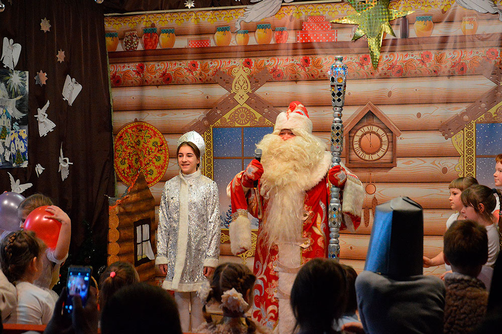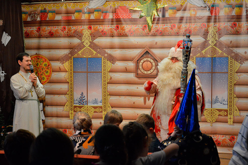 После приветственного слова настоятеля храма священника Димитрия Выдумкина, рассказавшего о значении праздника Рождества Христова, с Рождественской постановкой выступил коллектив воскресной школы. После небольшого антракта праздник продолжился небольшими репризами, акробатическими номерами и фокусами, подготовленными цирковой студией «Радуга», входящей в состав воскресной школы. Увенчался праздник приходом Деда Мороза, который поздравил всех присутствующих с наступившими Новым годом и Рождеством Христовым и подарил всем подарки.